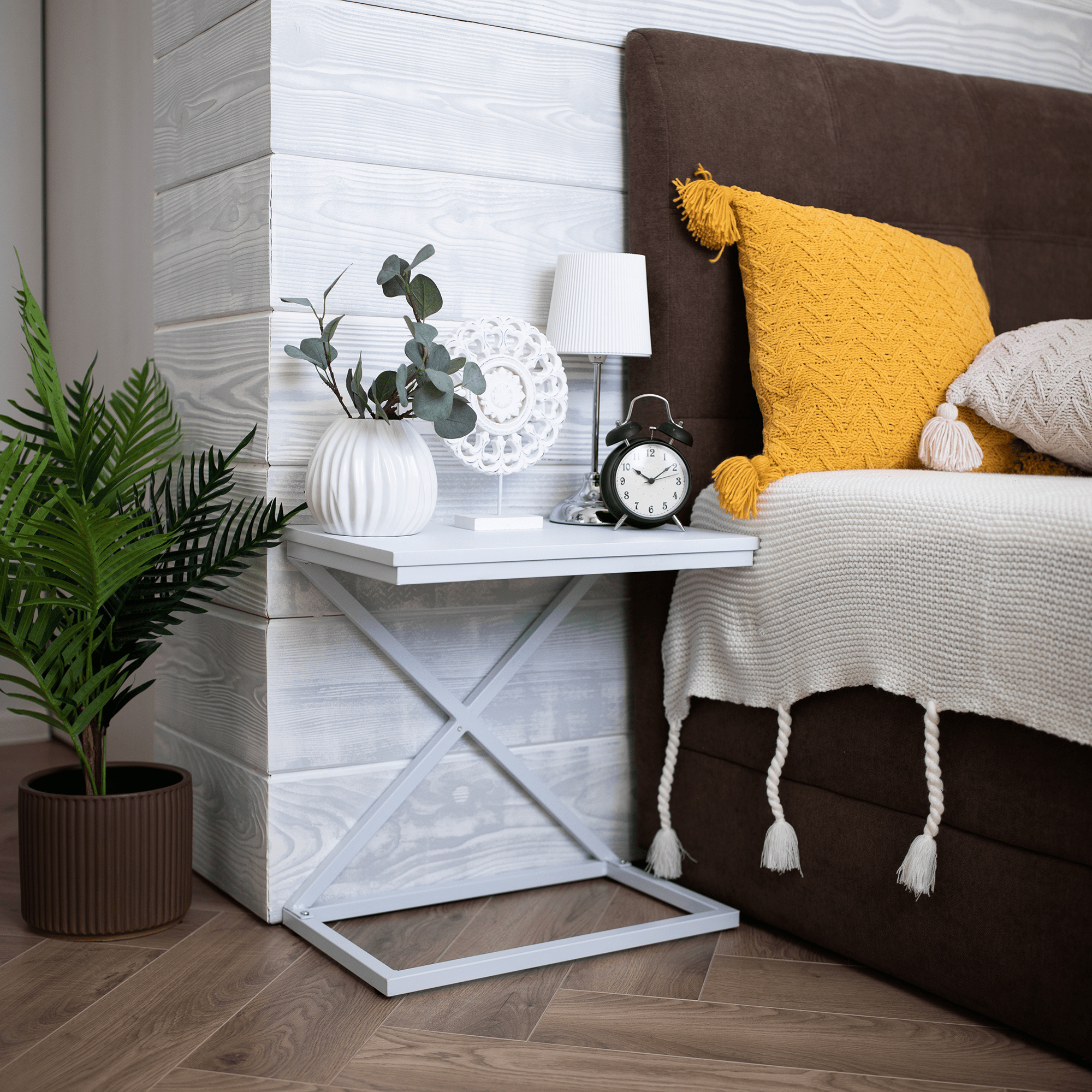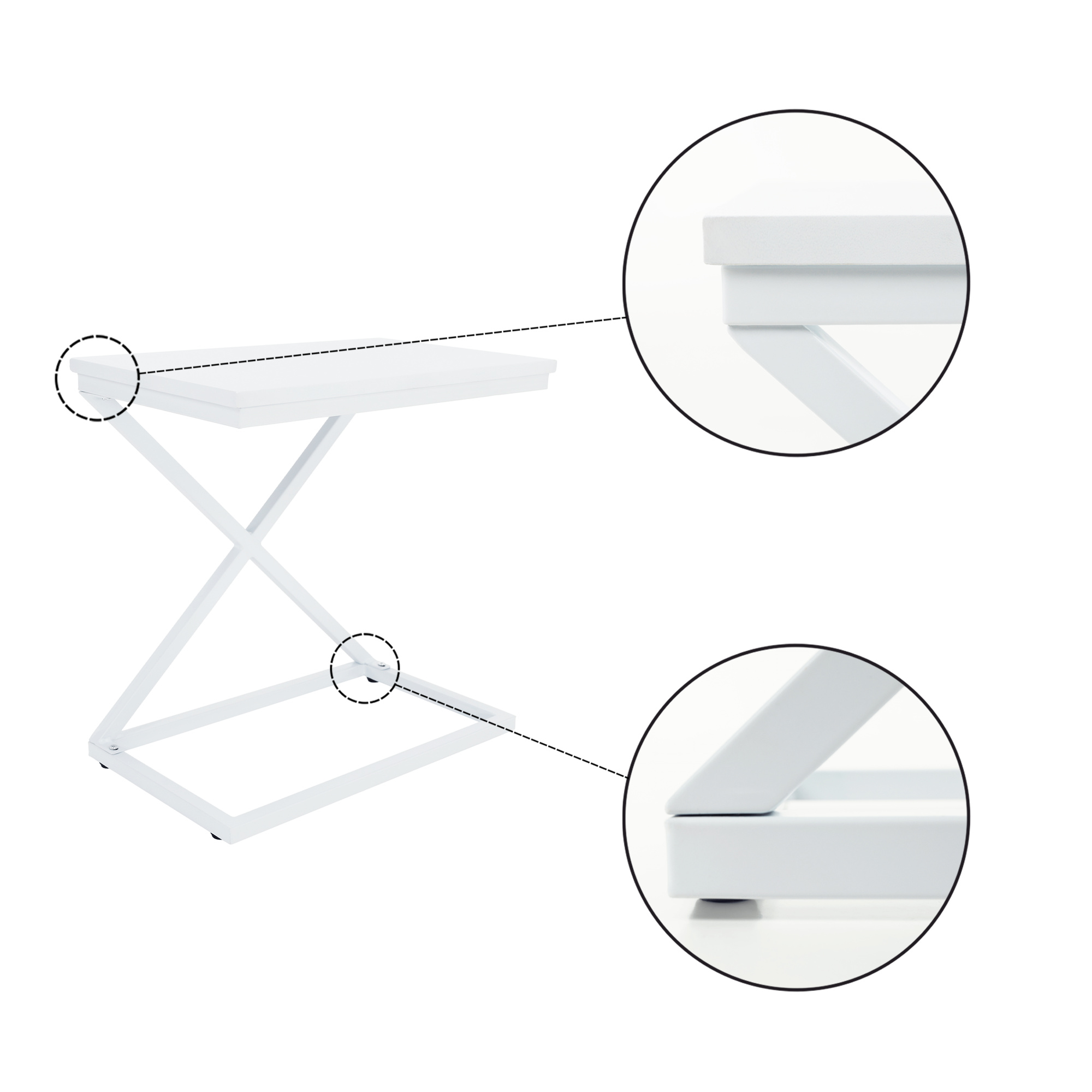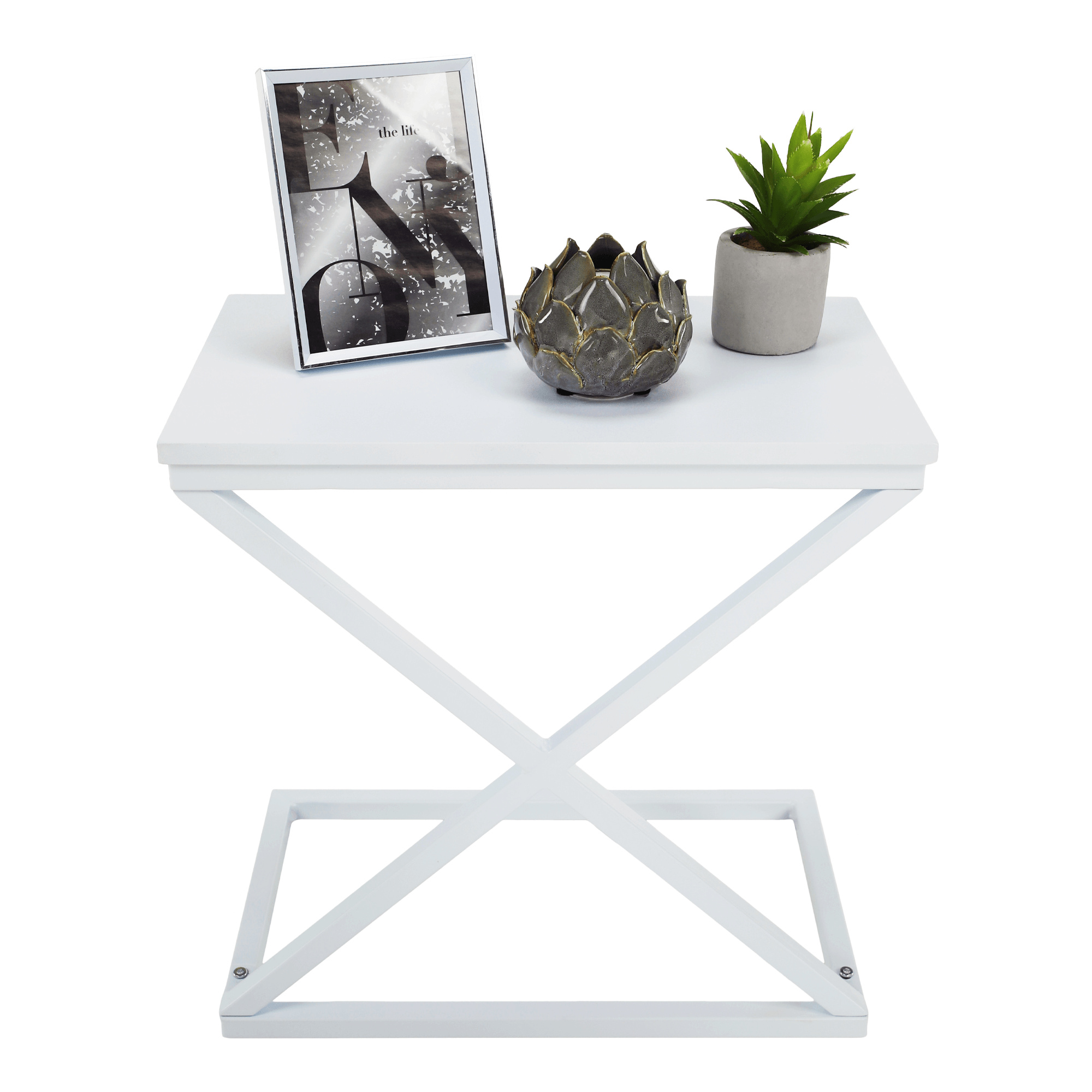 Materiál: MDF / kov Barva: bílá Rozměry (ŠxHxV): 50x30x50 cm Nosnost: 5 kg bez šuplíku příruční stolek noční stolek industriální styl Dodávané v demontu