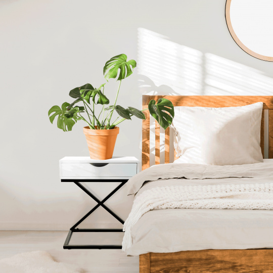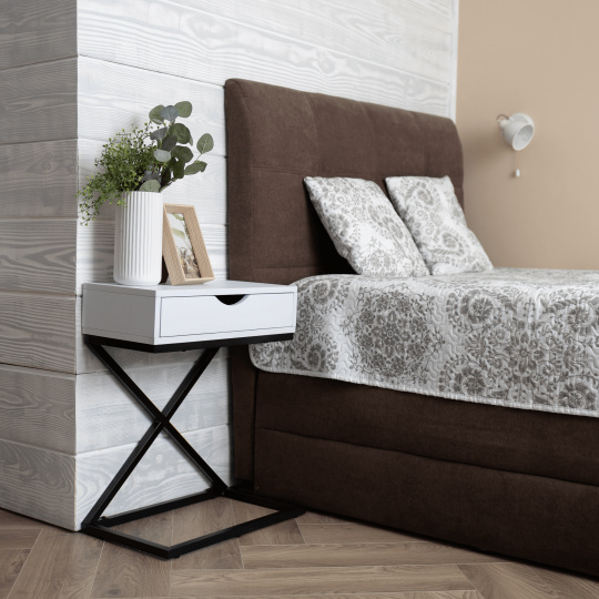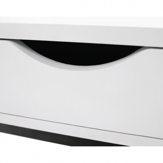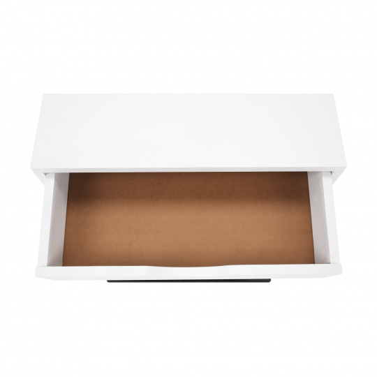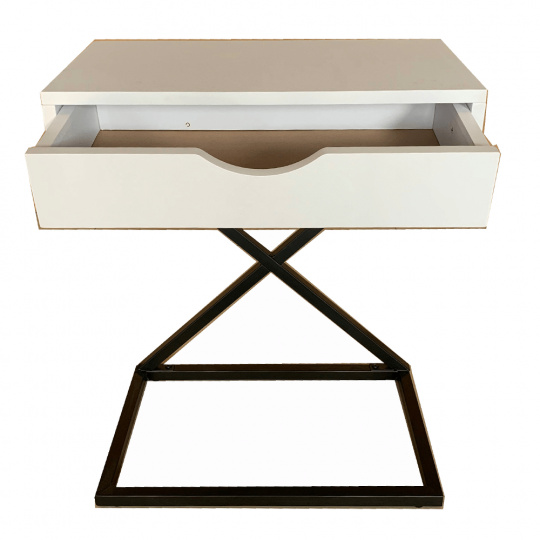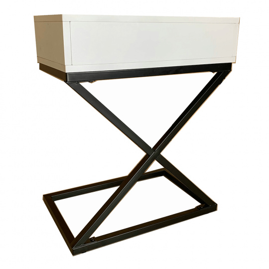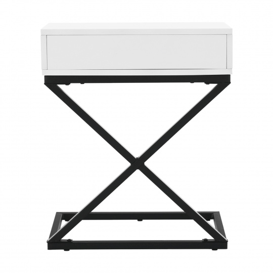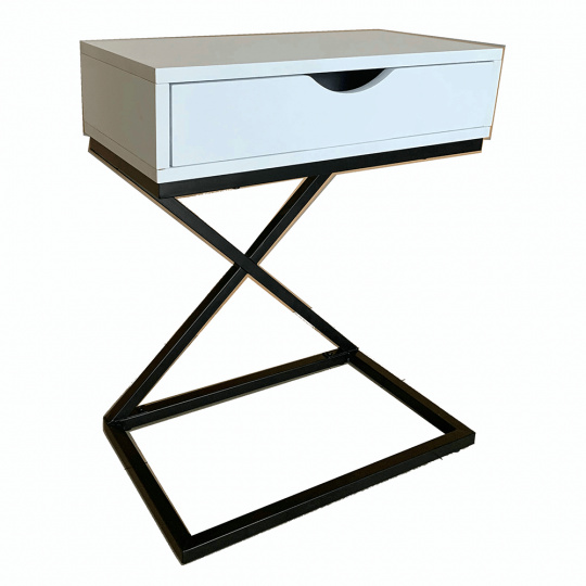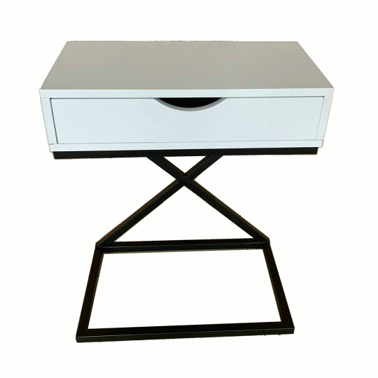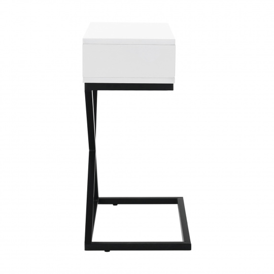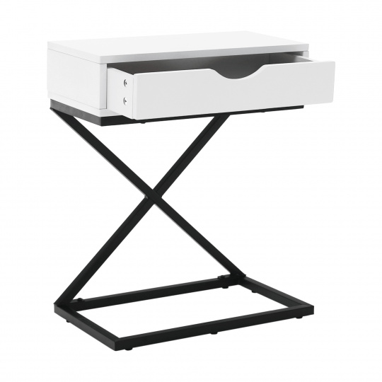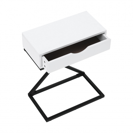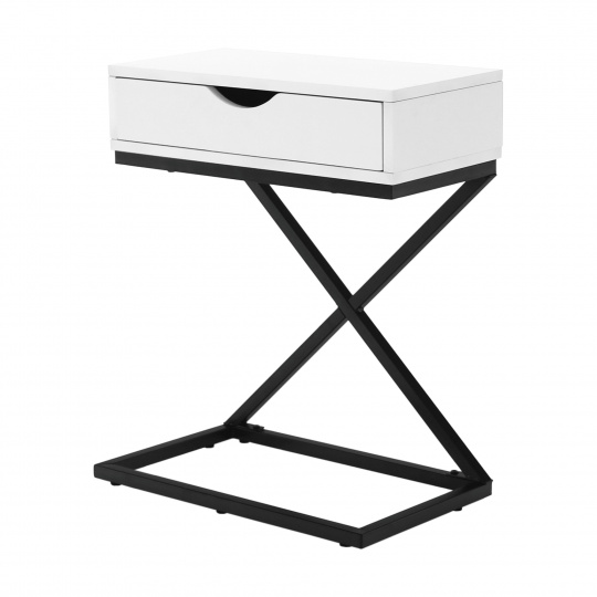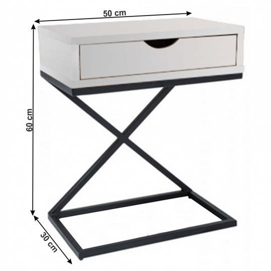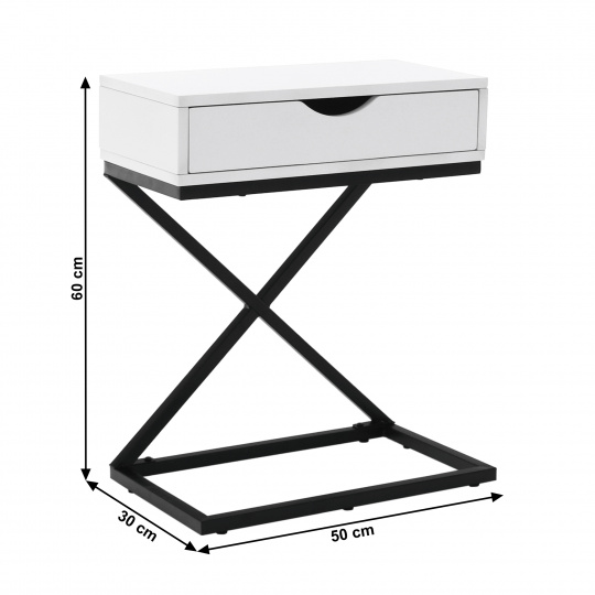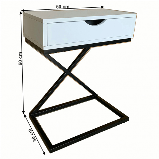 Materiál: MDF (PVC fólie) / kov Barva: bílá / černá Rozměry (ŠxHxV): 50x30x60 cm se šuplíkem příruční stolek noční stolek Dodávané v demontu
