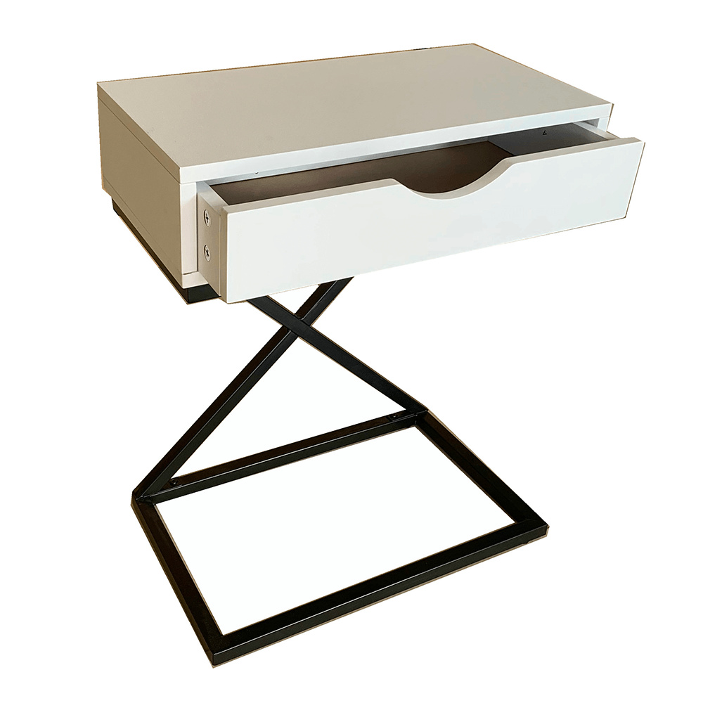 Materiál: MDF (PVC fólie) / kov Barva: bílá / černá Rozměry (ŠxHxV): 50x30x60 cm se šuplíkem příruční stolek noční stolek Dodávané v demontu