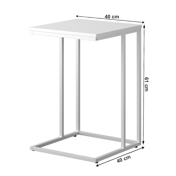 Příruční stolek KALA Materiál: DTD fóliovaná / kov Barva: bílá Rozměry (ŠxHxV): 40x40x61 cm Tloušťka materiálu: 15 mm Dodávané v demontu.