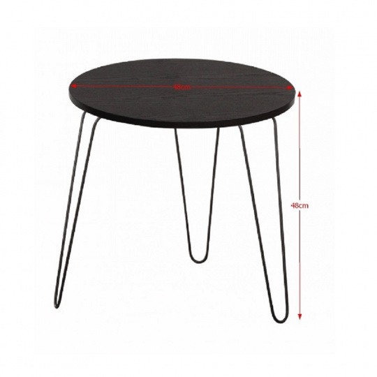 Elegantní příruční stolek RONIN. Barva: černý dub / černé kovové nohy Materiál: MDF / kov Rozměry (ŠxHxV): 48x48x48 cm Tloušťka materiálu: 15 mm Dodávané v demontu.