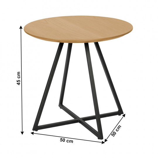 Materiál: MDF / kov Barva: dub / černá Rozměry (ŠxHxV): 50x50x45 cm Nosnost: 5 kg designový industriální styl Dodávané v demontu.