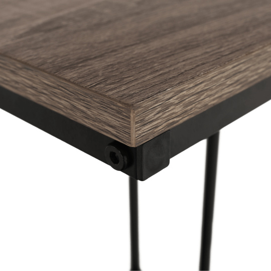 Příruční stolek KALA. Materiál: DTD fóliovaná / kov Barva: efekt dub / černá Rozměry (ŠxHxV): 40x40x61 cm Tloušťka materiálu: 15 mm Dodávané v demontu.