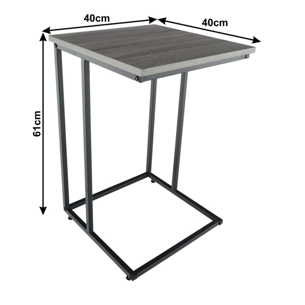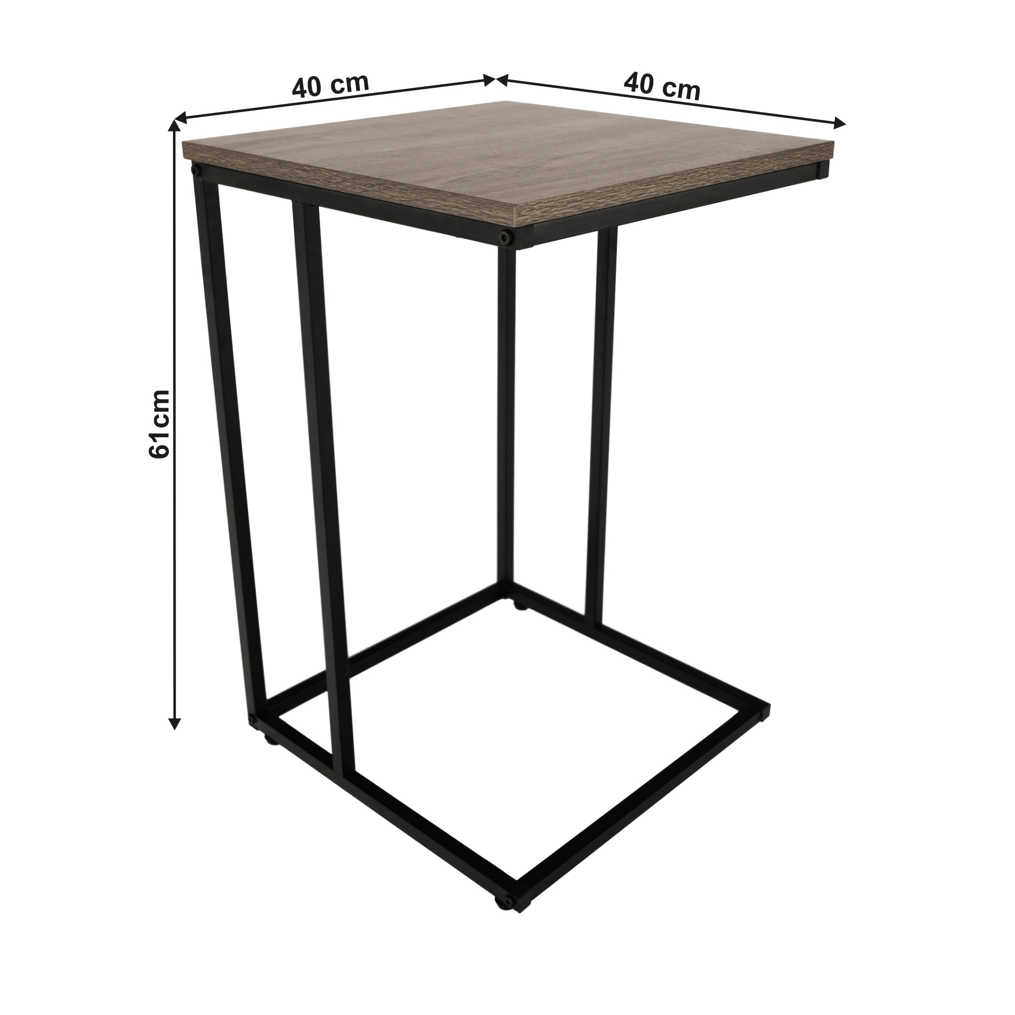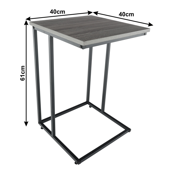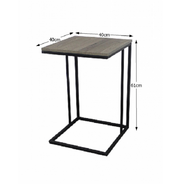 Příruční stolek KALA. Materiál: DTD fóliovaná / kov Barva: efekt dub / černá Rozměry (ŠxHxV): 40x40x61 cm Tloušťka materiálu: 15 mm Dodávané v demontu.
