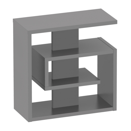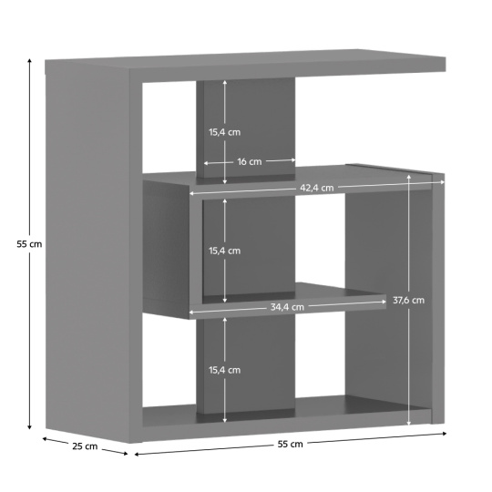 Materiál: laminovaná DTD Barva: grafit Rozměry (ŠxHxV): 55x25x55 cm Tloušťka materiálu: 2,2 cm Police Výška mezi policemi: 15,4 cm Otevřený úložný prostor Příruční stolek Samolepící pěnové kluzáky Nosnost: 5 kg Hmotnost: 13 kg Moderní design Kvalitní slovenský výrobek Dodáváno v demontu