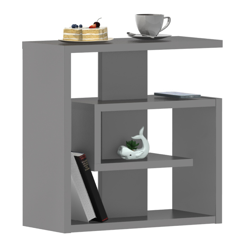 Materiál: laminovaná DTD Barva: grafit Rozměry (ŠxHxV): 55x25x55 cm Tloušťka materiálu: 2,2 cm Police Výška mezi policemi: 15,4 cm Otevřený úložný prostor Příruční stolek Samolepící pěnové kluzáky Nosnost: 5 kg Hmotnost: 13 kg Moderní design Kvalitní slovenský výrobek Dodáváno v demontu