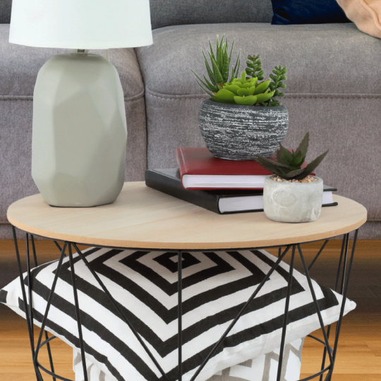 Příruční stolek NANCER TYP 2 Materiál: MDF/kov Barva: přírodní/černá Rozměry (ŠxHxV): 40x40x34 cm Dodávané v montu.