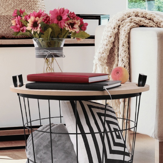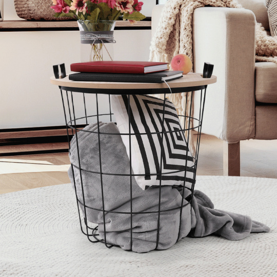 Příruční stolek NANDO Materiál: MDF/kov Barva: přírodní vzor/černá Rozměry (ŠxHxV): 45x45x48x cm Dodávané v montu.