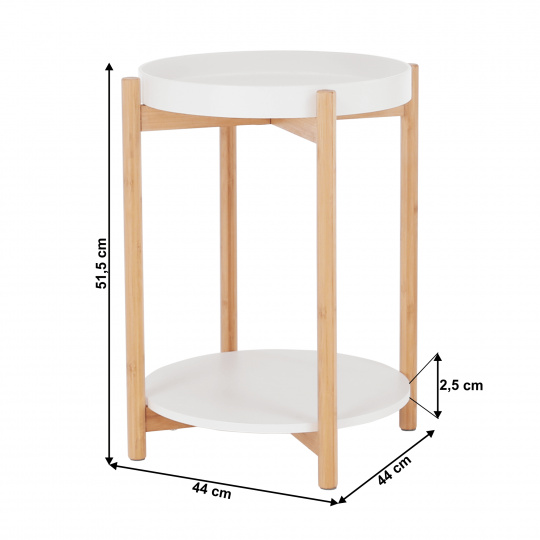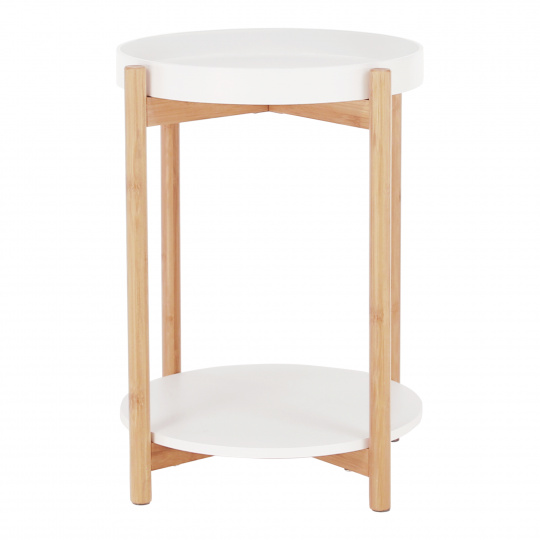 Příruční stolek s odnímatelnou tácem, bílá / přírodní, KABRA