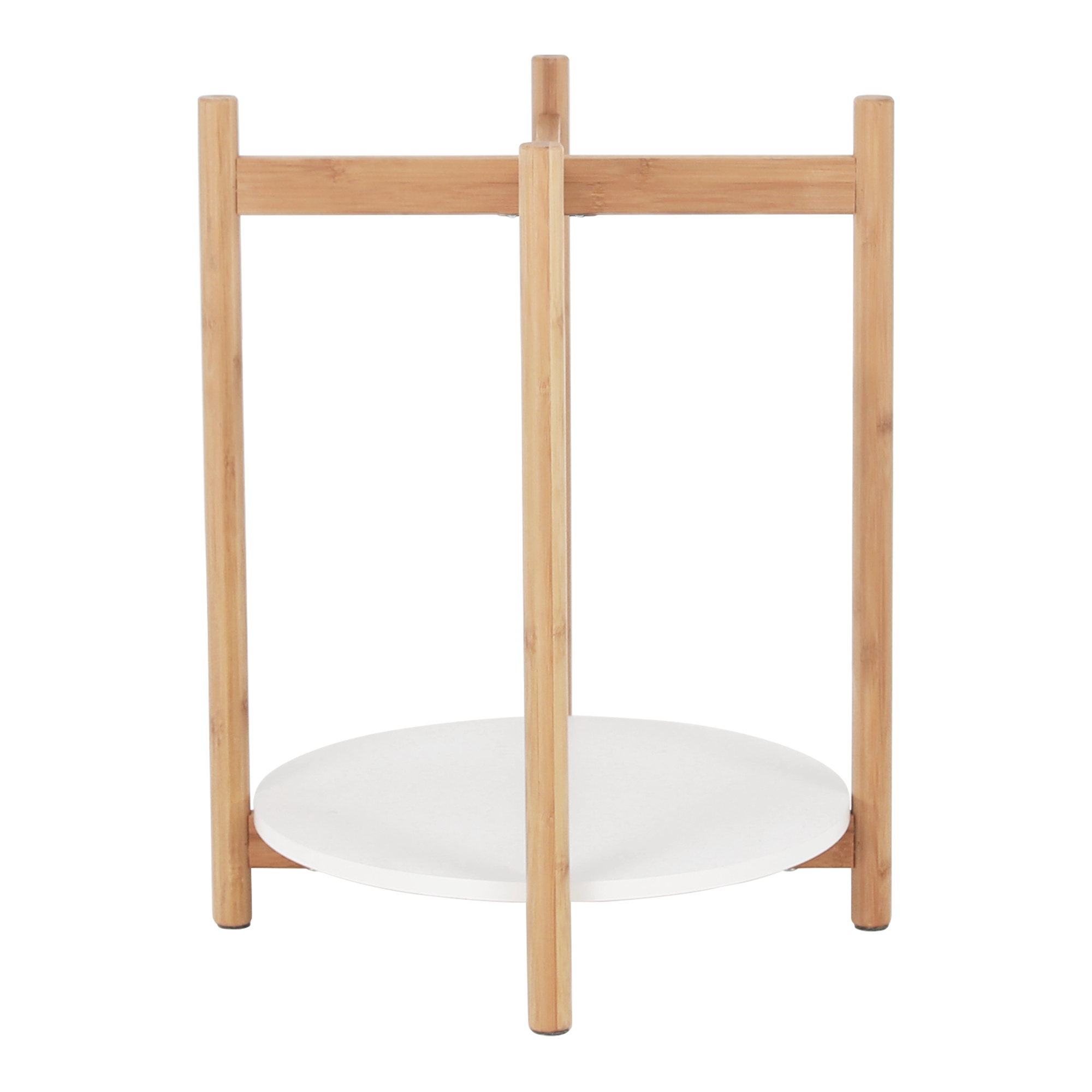 Materiál: bambus lakovaný Barva: přírodní / bílá Rozměry (ŠxHxV): 41x41x51 cm Nosnost: 10 kg Tloušťka polic: 1 cm Tloušťka konstrukce: 2,5 cm odnímatelná tácek moderní zpracování Dodávané v demontu