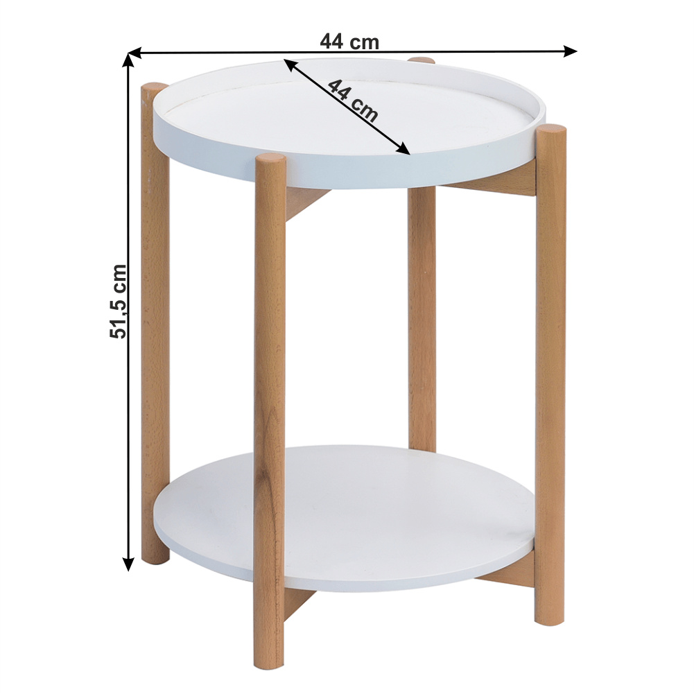 Příruční stolek s odnímatelnou tácem, bílá / přírodní, KABRA