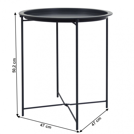 Materiál: kov Barva: černá Rozměry (ŠxHxV): 47x47x50,2 cm Nosnost: 8 kg pevná konstrukce kovová konstrukce S odnímatelnou tácem retro styl Dodávané v demontu