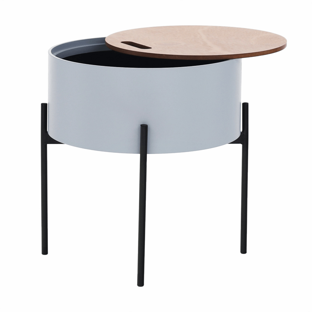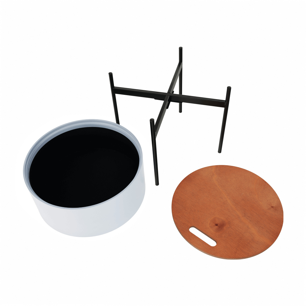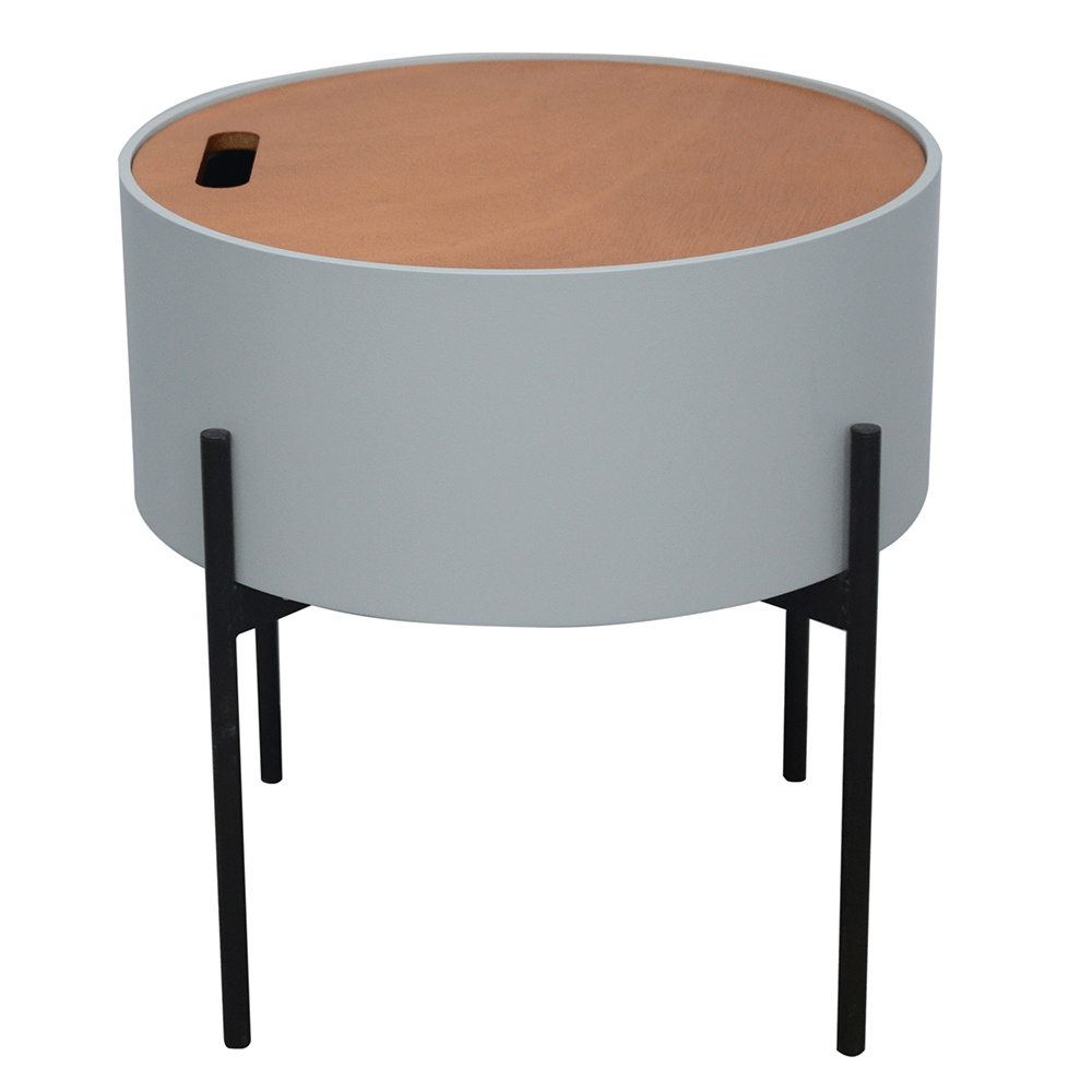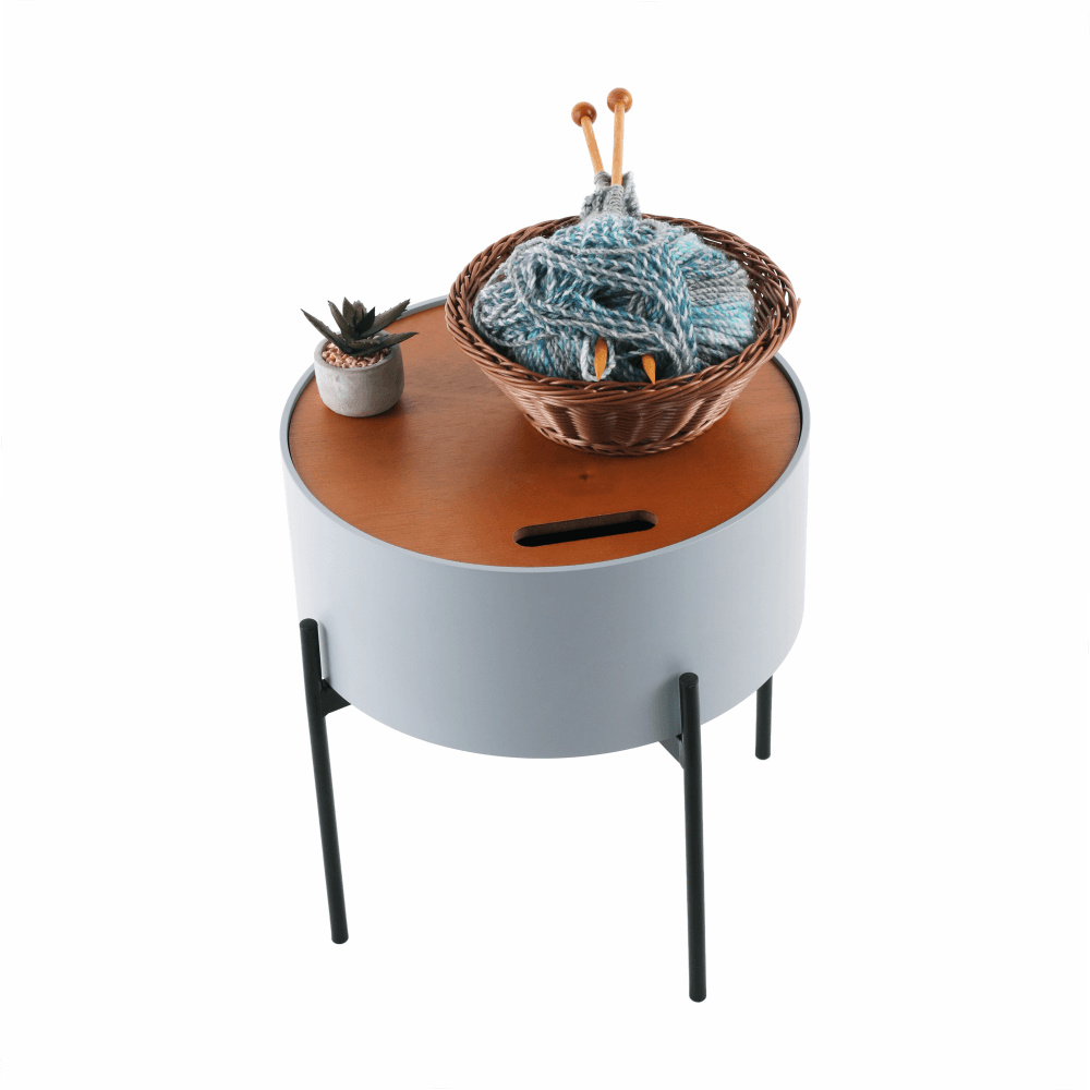 Materiál: MDF / kov Barva: šedá / přírodní / černá Rozměry (ŠxHxV): 38x38x38,5 cm Nosnost: 30 kg odnímatelné víko S úložným prostorem Dodávané v demontu