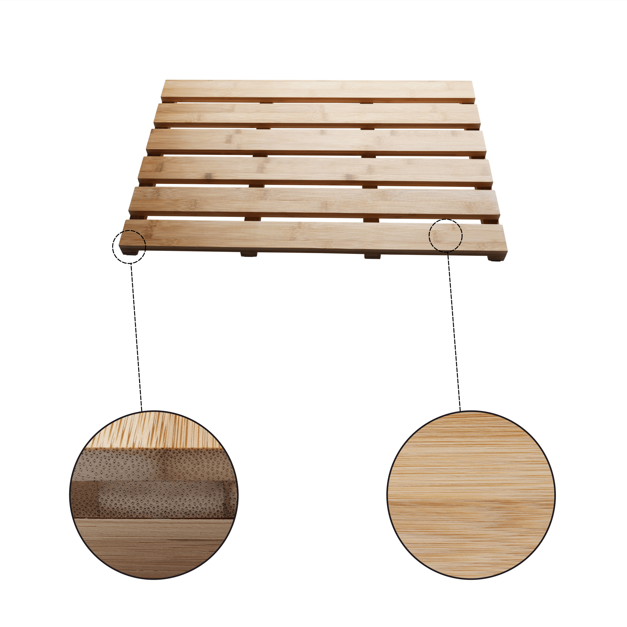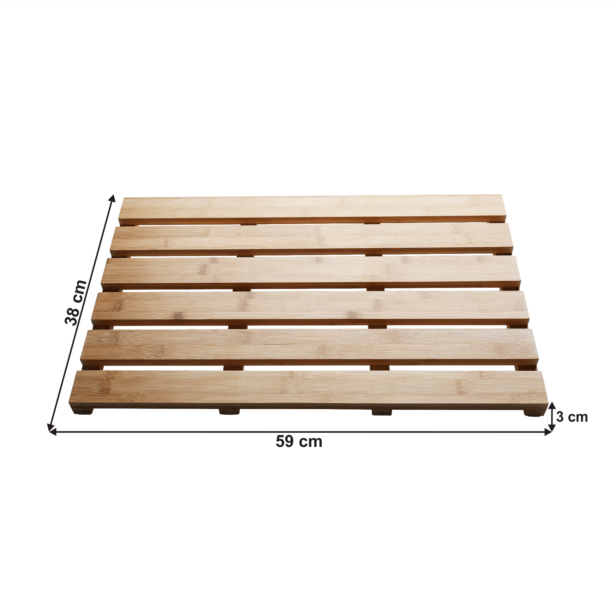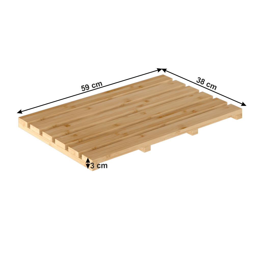 Materiál: lakovaný bambus Barva: přírodní Rozměry (ŠxHxV): 59x38x3 cm koupelnová podložka S protiskluzovou úpravou Do koupelny, sauny i wellness Snadná údržba Zachována cirkulace vzduchu všestranné využití moderní design Dodávané v monte
