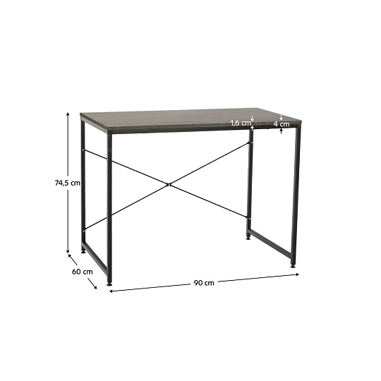 Psací stůl, beton/černá, 90x60 cm, MELLORA
