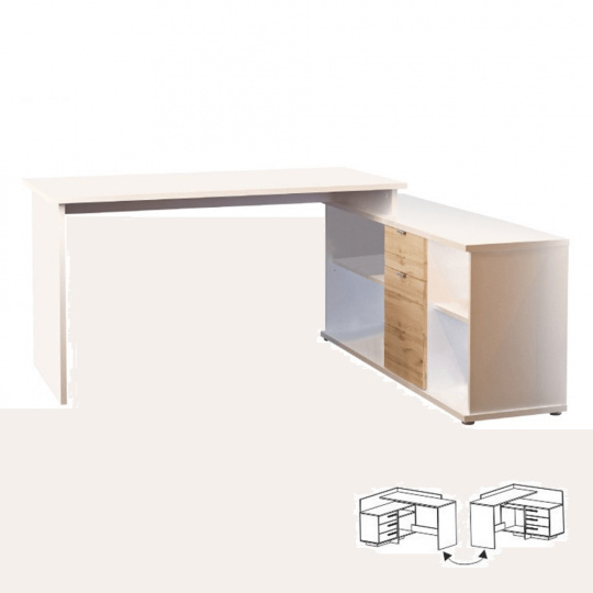 Psací stůl, bílá/dub wotan, DALTON 2 NEW VE 02