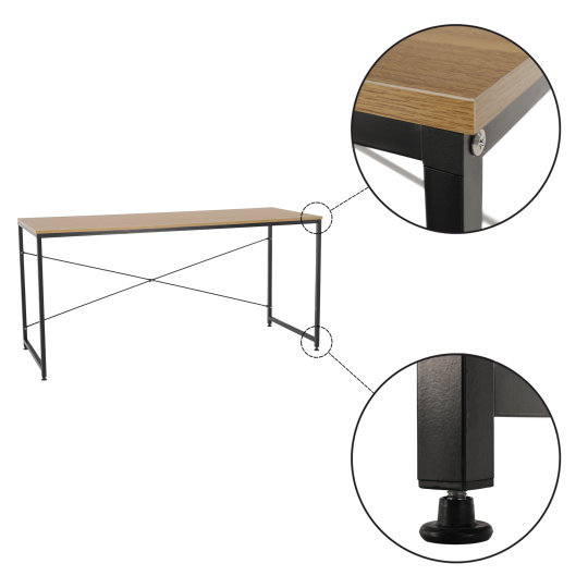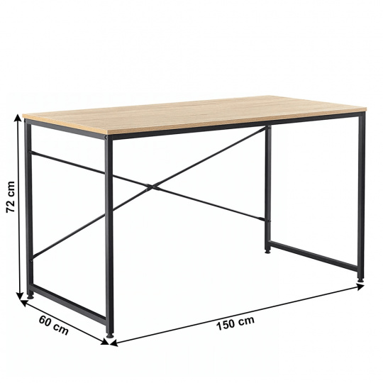 Materiál: kov / MDF laminovaná Barva: černá / dub Rozměry (ŠxHxV): 150x60x74,5 cm Tloušťka materiálu: 16 mm Nosnost: 50 kg Rektifikační šrouby na nohách moderní design všestranné využití Dodávané v demontu
