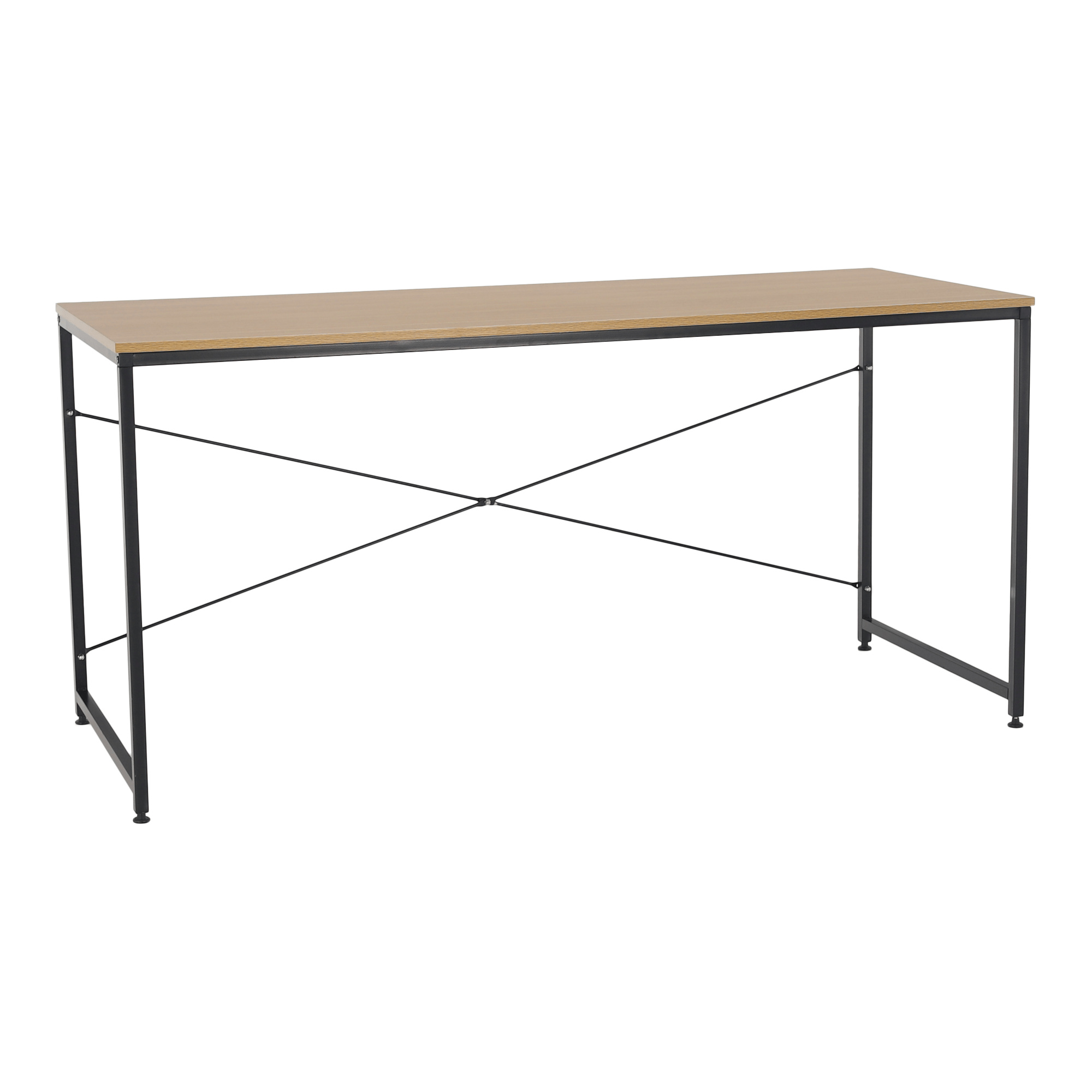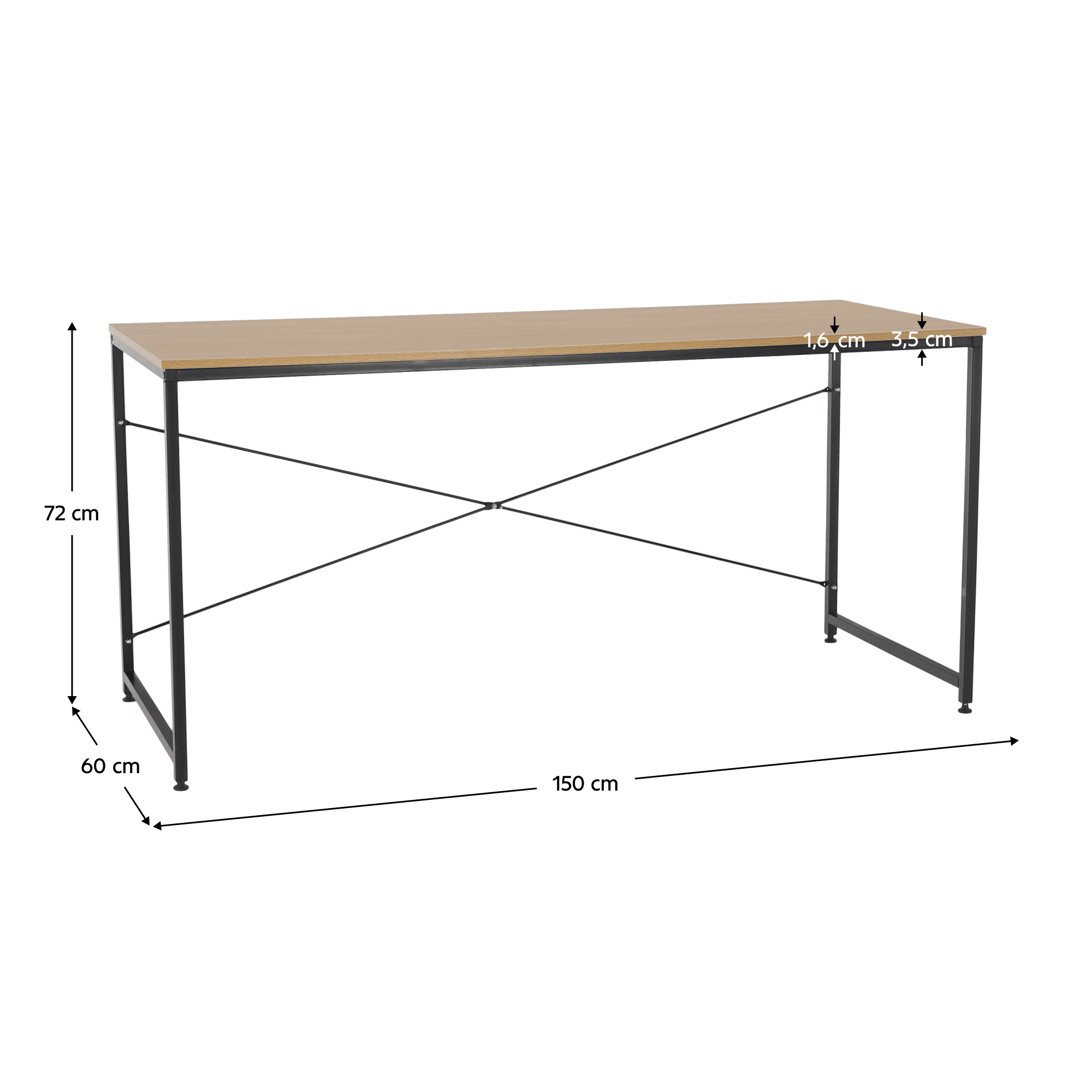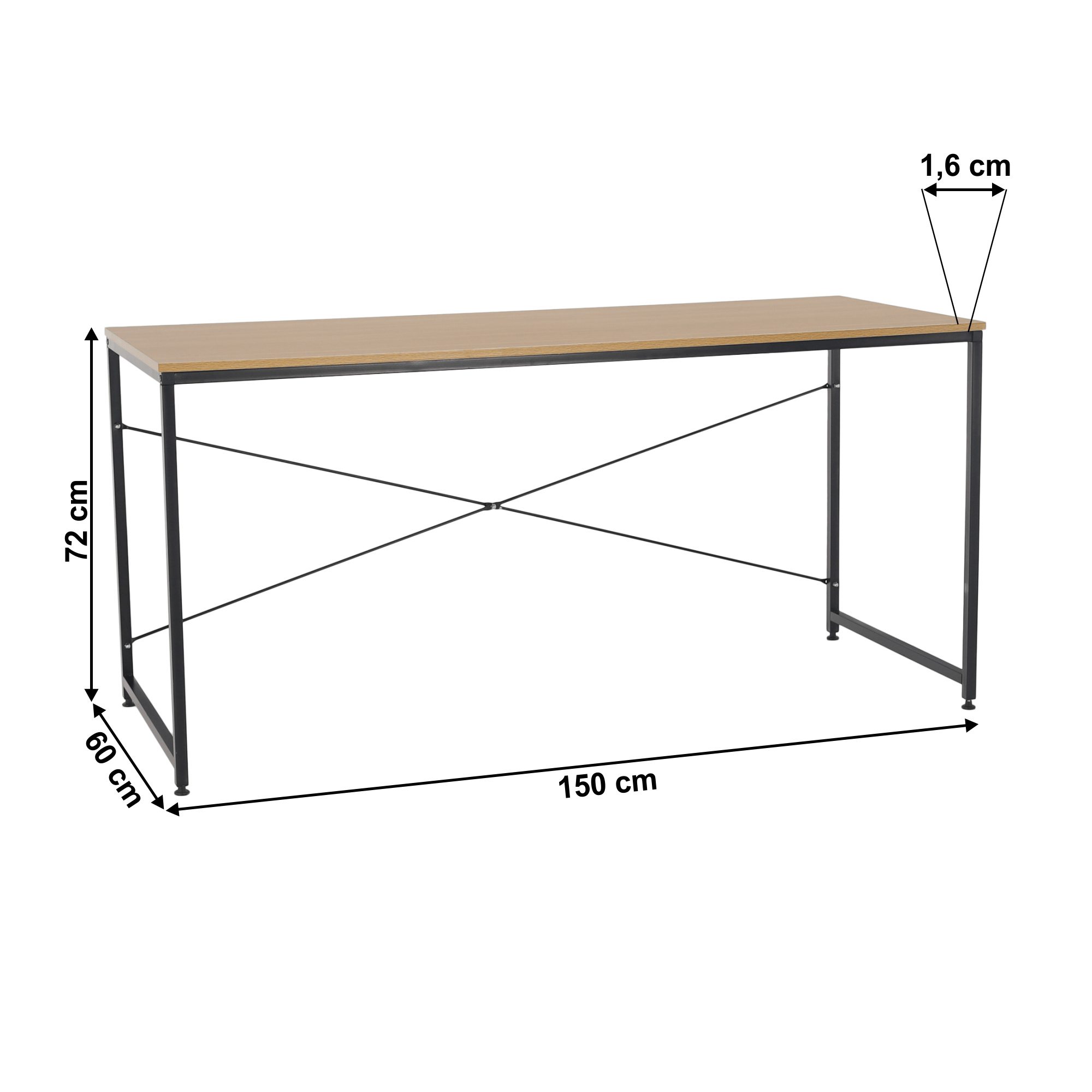 Materiál: kov / MDF laminovaná Barva: černá / dub Rozměry (ŠxHxV): 150x60x74,5 cm Tloušťka materiálu: 16 mm Nosnost: 50 kg Rektifikační šrouby na nohách moderní design všestranné využití Dodávané v demontu