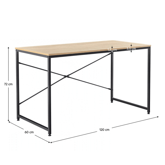 Materiál: kov / MDF laminovaná Barva: černá / dub Rozměry (ŠxHxV): 120x60x74,5 cm Tloušťka materiálu: 16 mm Nosnost: 60 kg Rektifikační šrouby na nohách moderní design všestranné využití Dodávané v demontu