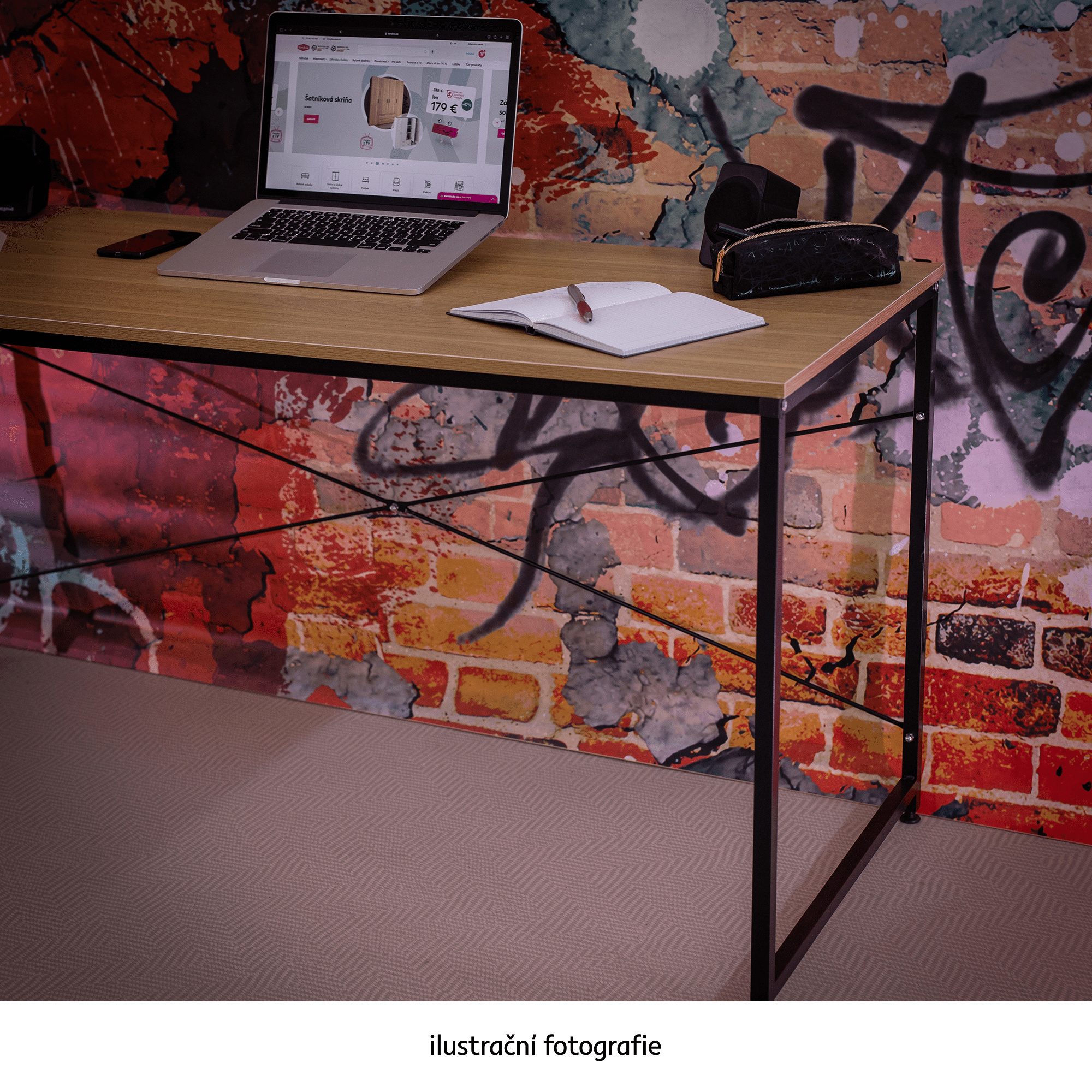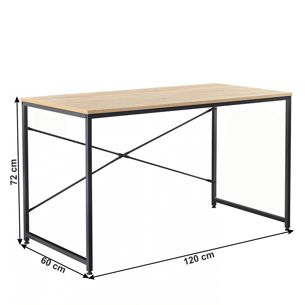 Materiál: kov / MDF laminovaná Barva: černá / dub Rozměry (ŠxHxV): 120x60x74,5 cm Tloušťka materiálu: 16 mm Nosnost: 60 kg Rektifikační šrouby na nohách moderní design všestranné využití Dodávané v demontu