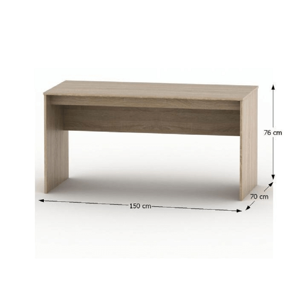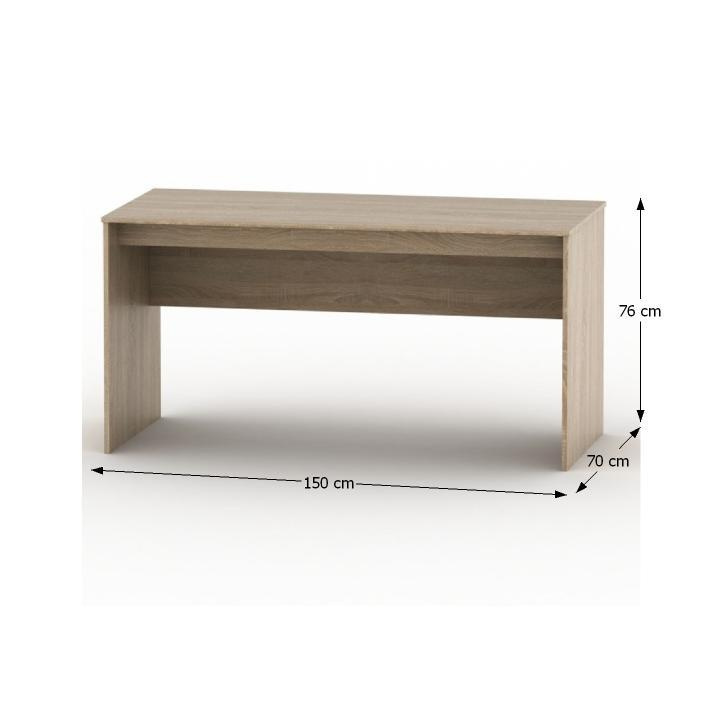Psací stůl typ AS 020 PI Materiál: DTD laminovaná / ABS hrany Provedení: dub sonoma Rozměry (ŠxHxV): 150x70x76 cm Tloušťka materiálu: 16 mm Skladem ihned k odběru Sektor vhodný na zařízení kanceláři, pracoven, školních učeben nebo zasedacích místností Dodávané v demontu