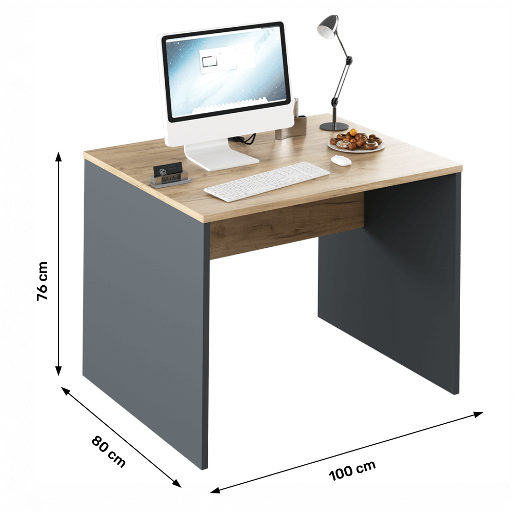 Psací stůl RIOMA NEW TYP 12 Barevné provedení: grafit / dub artisan Materiál: DTD laminovaná Rozměry (ŠxHxV): 100x80x76 cm Tloušťka materiálu: 22 mm Dodávané v demontu.