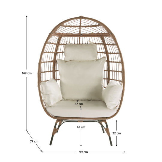 Materiál: technoratan/látka/kov Oderuodolnosť textílie podľa testu Martindale: 95 000 oderov Farba: prírodná/béžová/čierna Rozmery (ŠxHxV): 99x77x149 cm Výška sedenia: 47 cm Hĺbka sedenia: 57 cm Nosnosť na osobu: 100 kg Hmotnosť: 20 kg Hrúbka vankúša: 10 cm Na nožičkách Výška nožičiek: 32 cm Dodávané s vankúšmi Voděodolný potah Dodávané v demonte