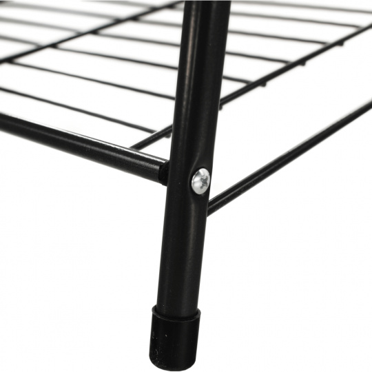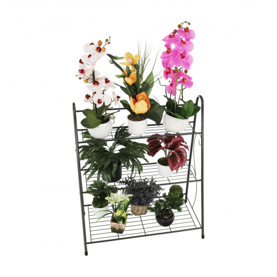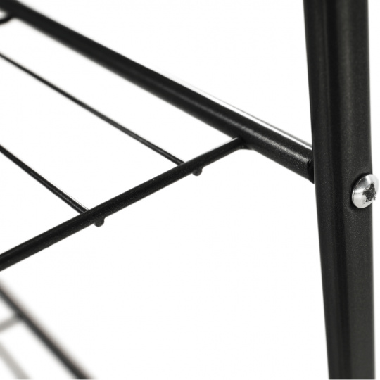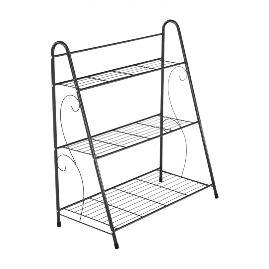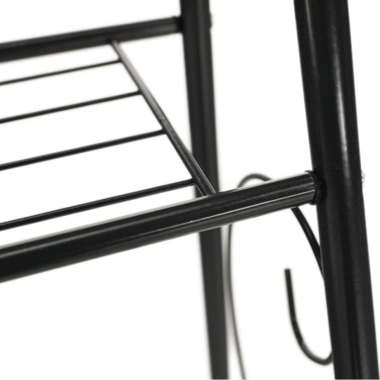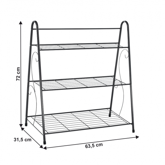 Materiál: kov Barva: tmavě šedá Rozměry (ŠxHxV): 63,5x31,5x72 cm 3 police Po stranách ornamenty Nosnost: 30 kg Nosnost na jednu polici: 10 kg Vhodný do interiéru Dodávané v demontu