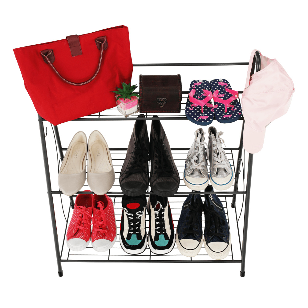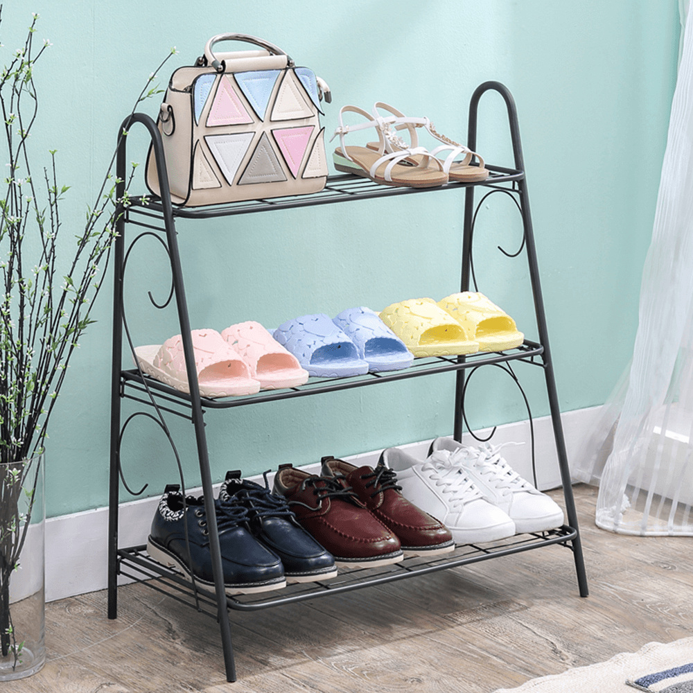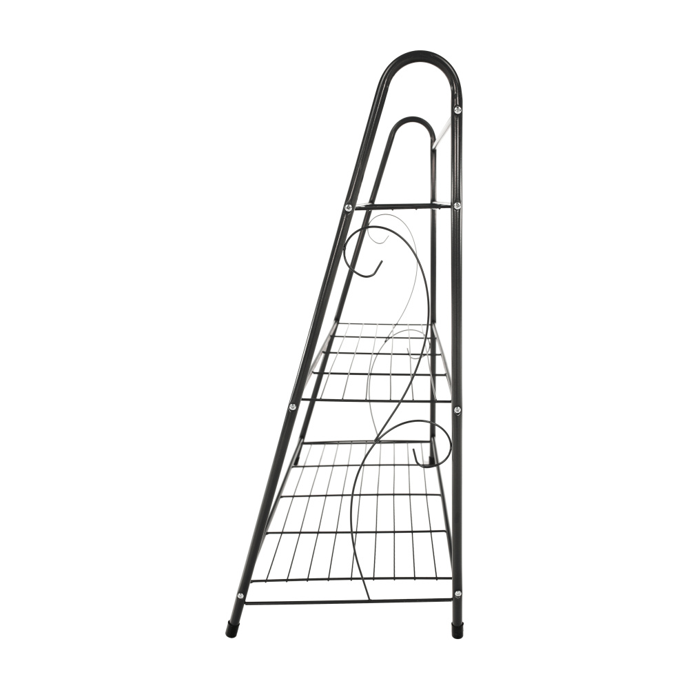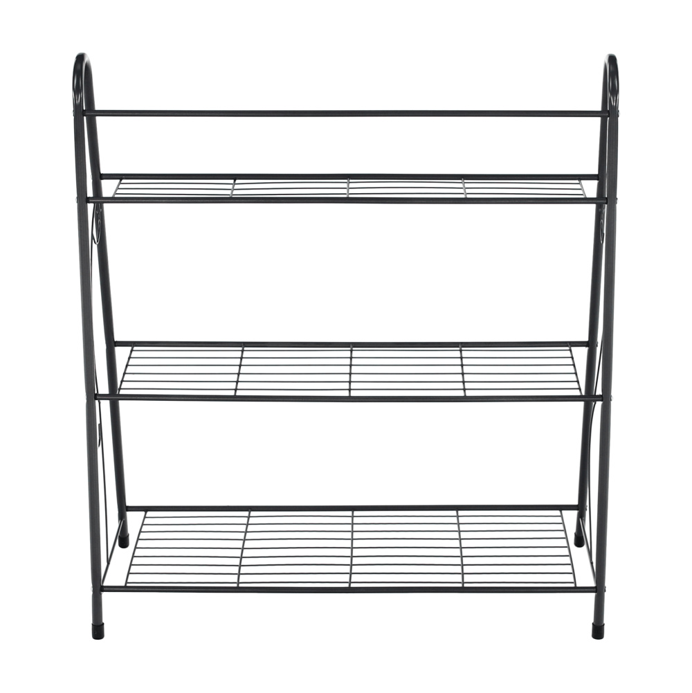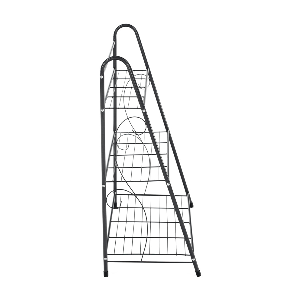 Materiál: kov Barva: tmavě šedá Rozměry (ŠxHxV): 63,5x31,5x72 cm 3 police Po stranách ornamenty Nosnost: 30 kg Nosnost na jednu polici: 10 kg Vhodný do interiéru Dodávané v demontu