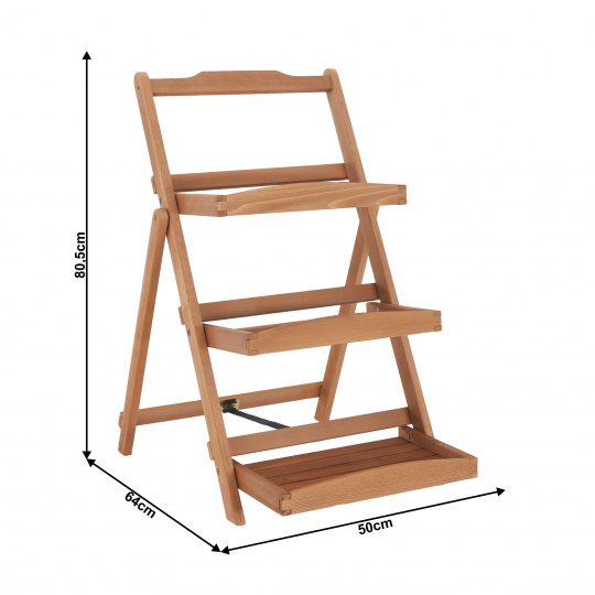 Materiál: masivní dřevo Barva: olše Rozměry (ŠxHxV): 50x64x80,5 cm 3 police Vonkajší odsoms polje 41,5 x 22 cm Vnitřní rozměr police 37,5 x 21,5 cm Vyvýšené přední čela polic Vhodný do interiéru i exteriéru Jako stojan na hrnkové rostliny Na fotografie, dekorace, suvenýry Dekorativní stojan v zahradě nebo na terase Praktický regál ke grilování Všestranný, různé využití Nosnost: 25 kg Dodávané v monte