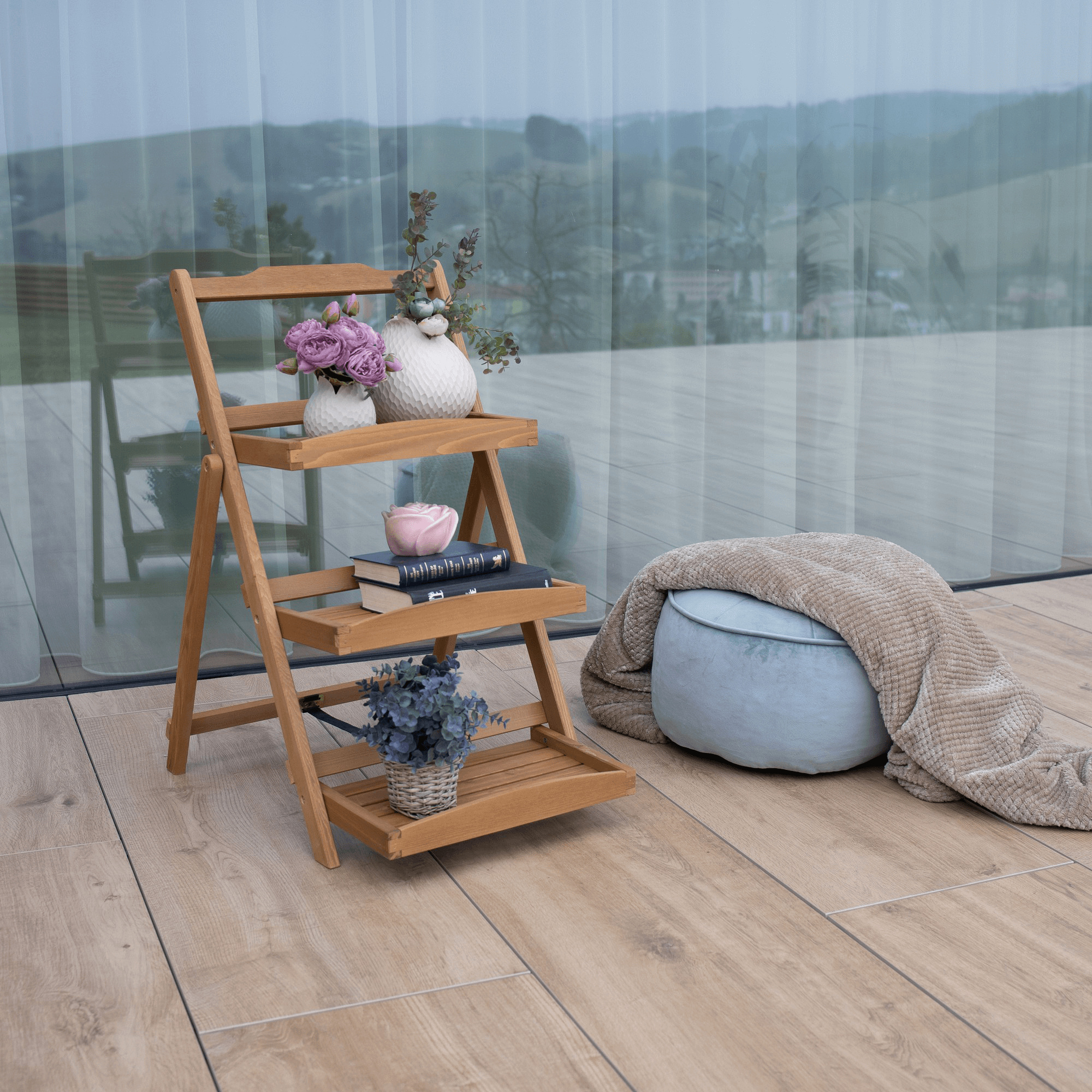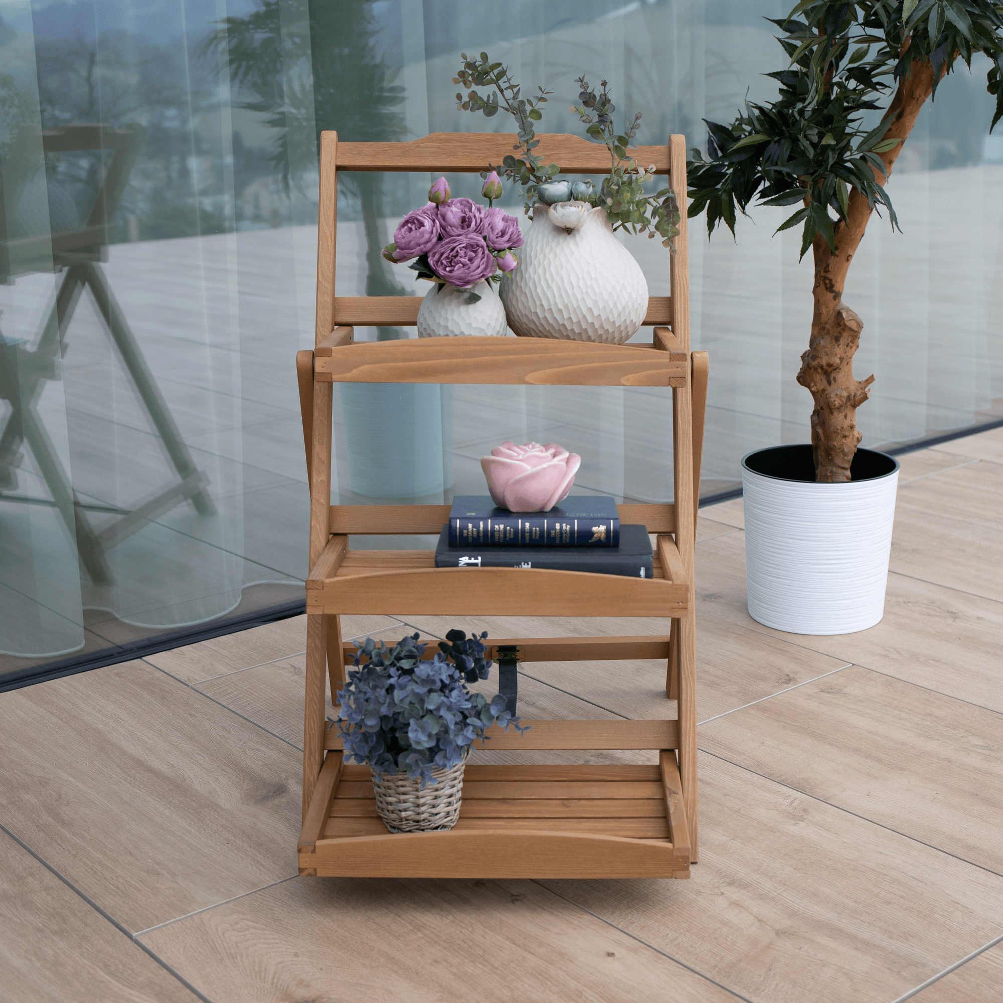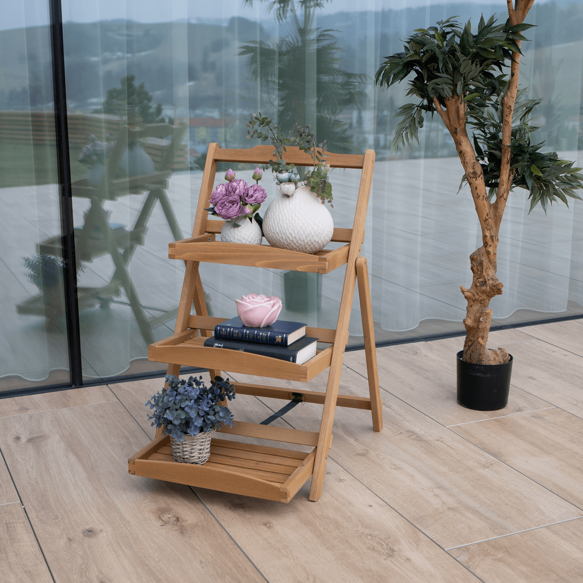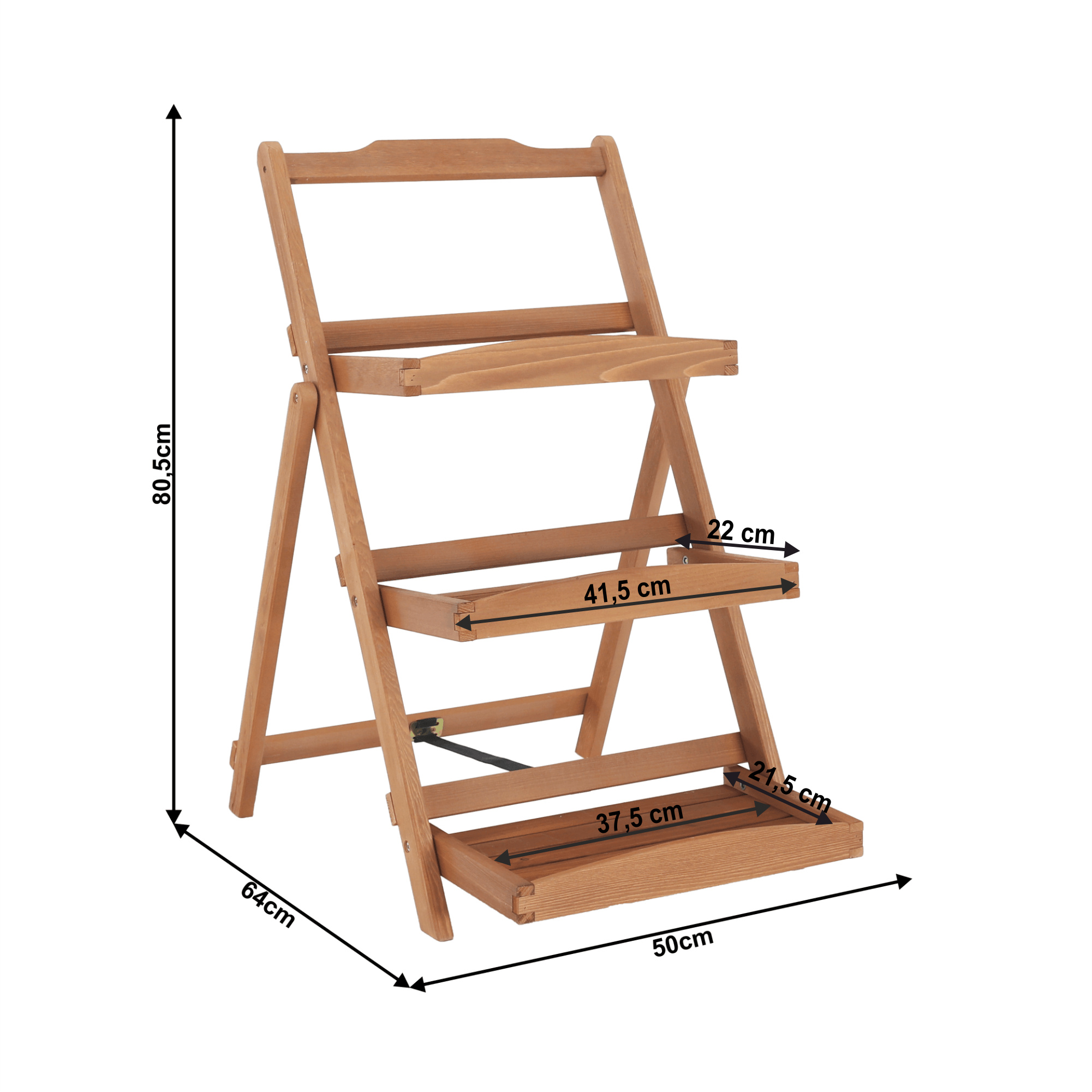 Materiál: masivní dřevo Barva: olše Rozměry (ŠxHxV): 50x64x80,5 cm 3 police Vonkajší odsoms polje 41,5 x 22 cm Vnitřní rozměr police 37,5 x 21,5 cm Vyvýšené přední čela polic Vhodný do interiéru i exteriéru Jako stojan na hrnkové rostliny Na fotografie, dekorace, suvenýry Dekorativní stojan v zahradě nebo na terase Praktický regál ke grilování Všestranný, různé využití Nosnost: 25 kg Dodávané v monte