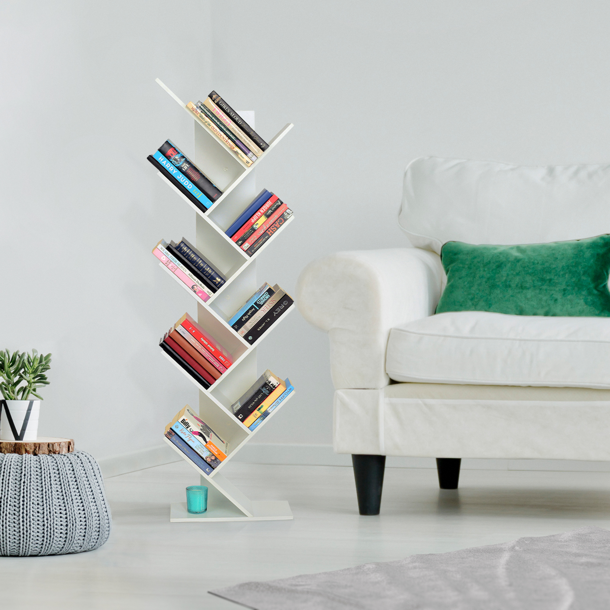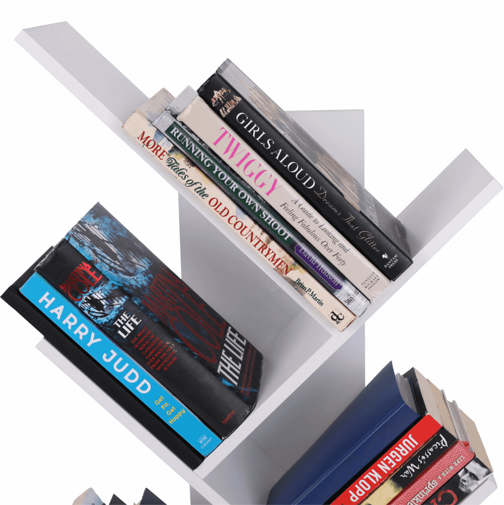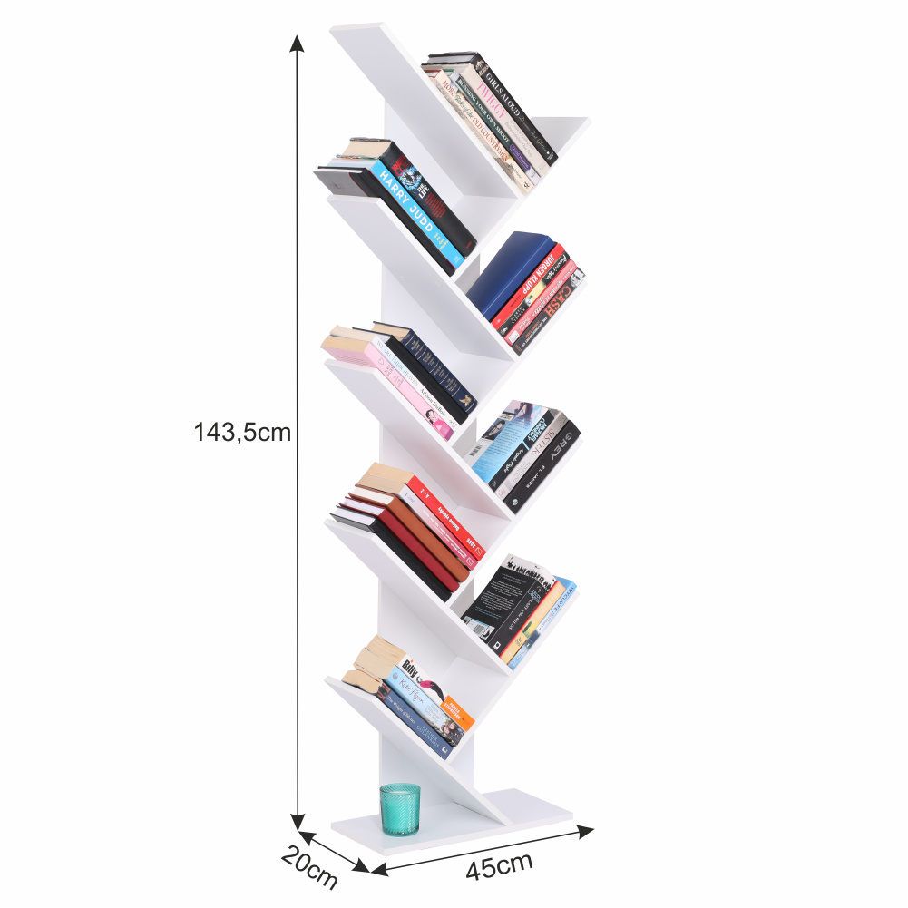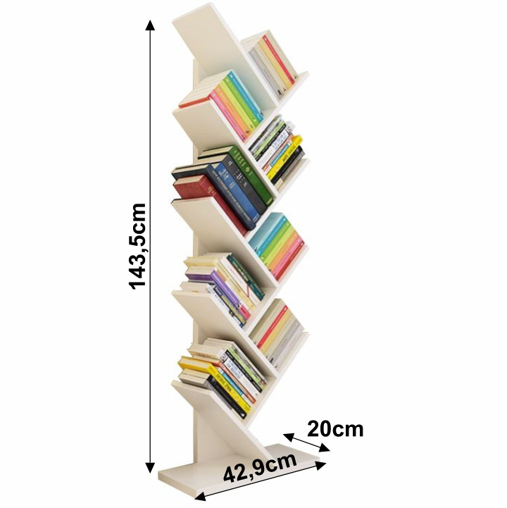 Víceúčelový regál v bílé barvě využitelný zejména jako knihovna. Materiál: DTD laminovaná Barva: bílá Rozměry (ŠxHxV): 43x20x143,5 cm Tloušťka materiálu: 12 mm Nosnost regálu: 24 kg.