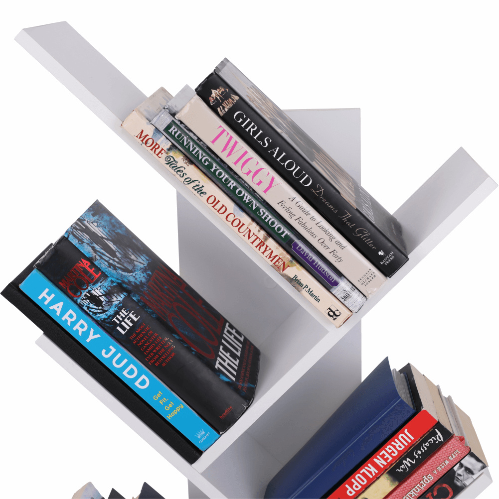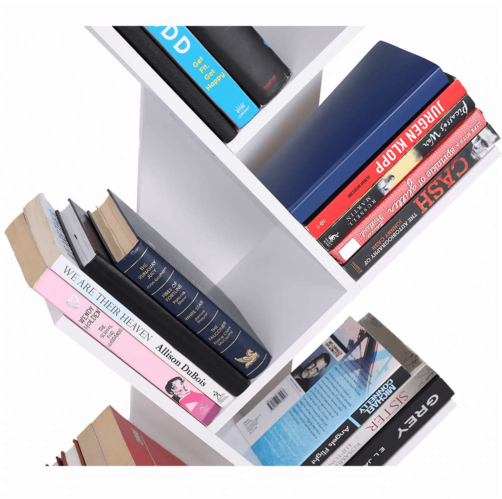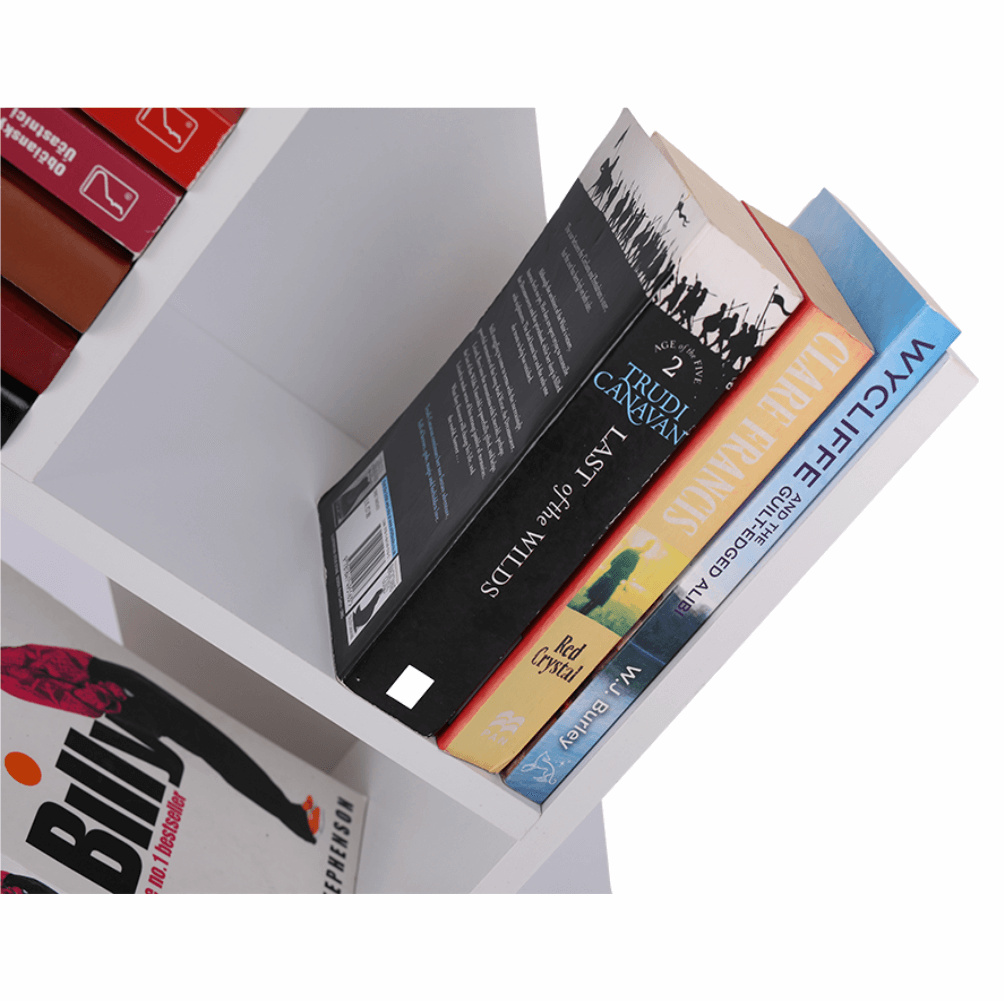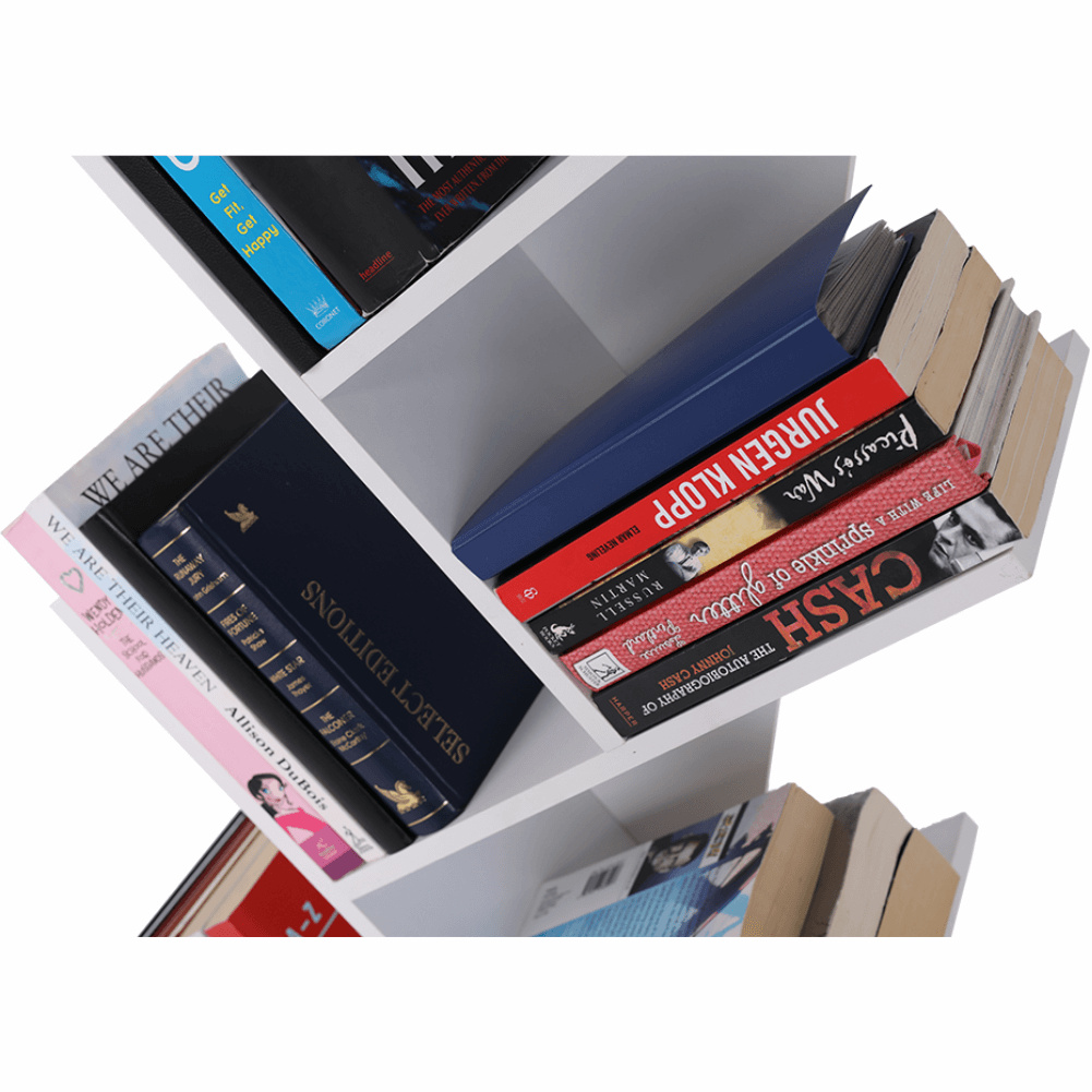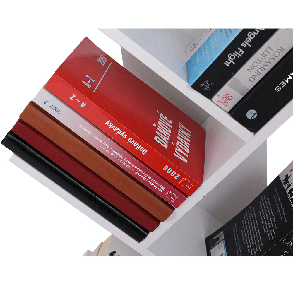 Materiál konstrukce: dřevoplastový kompozit Barva: bílá Rozměry (ŠxHxV): 45,5x45,5x158 cm knihovna Víceúčelový regál 5-policový Nosnost police: 5 kg Výška mezi police: 30,5 cm Dřevoplastový kompozit odolný vůči vlhkosti Otočný o 360 ° Patra se otáčejí najednou jedním směrem jednoduchá montáž Montáž způsobem "skládačka" Na knihy, dokumenty