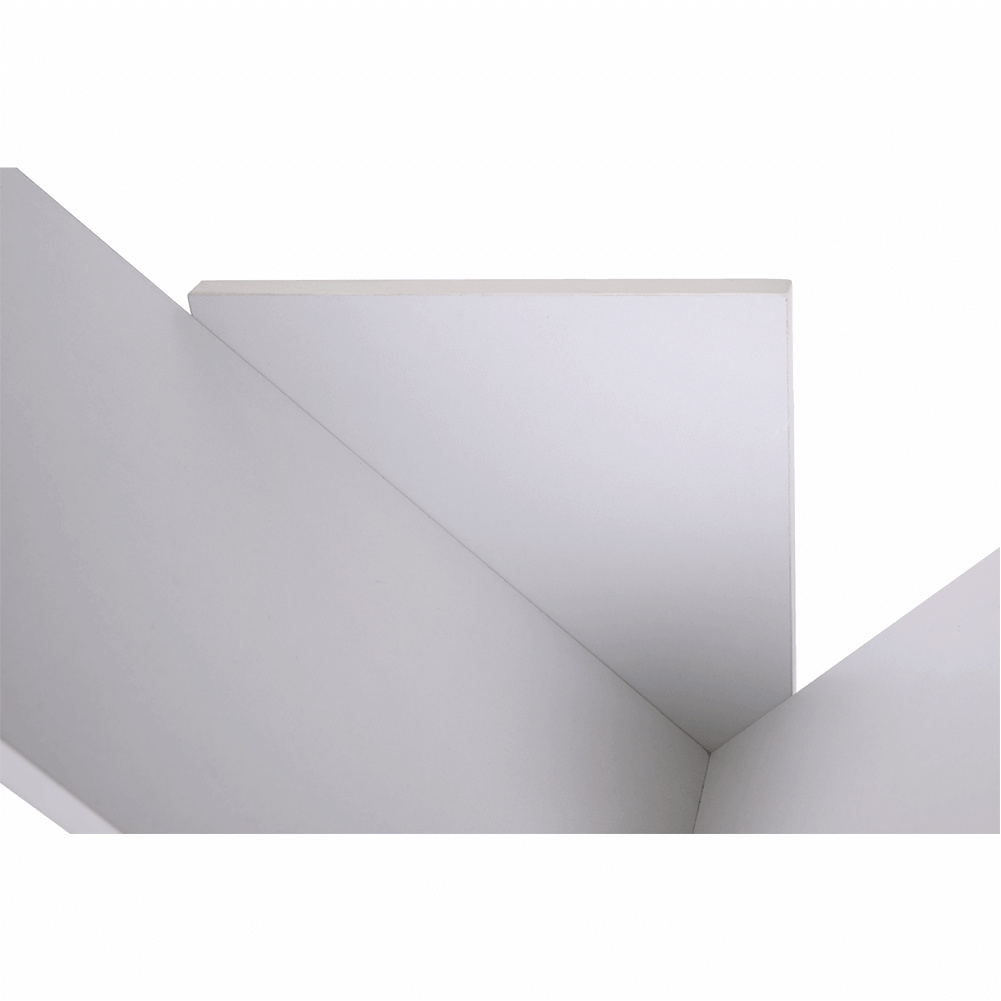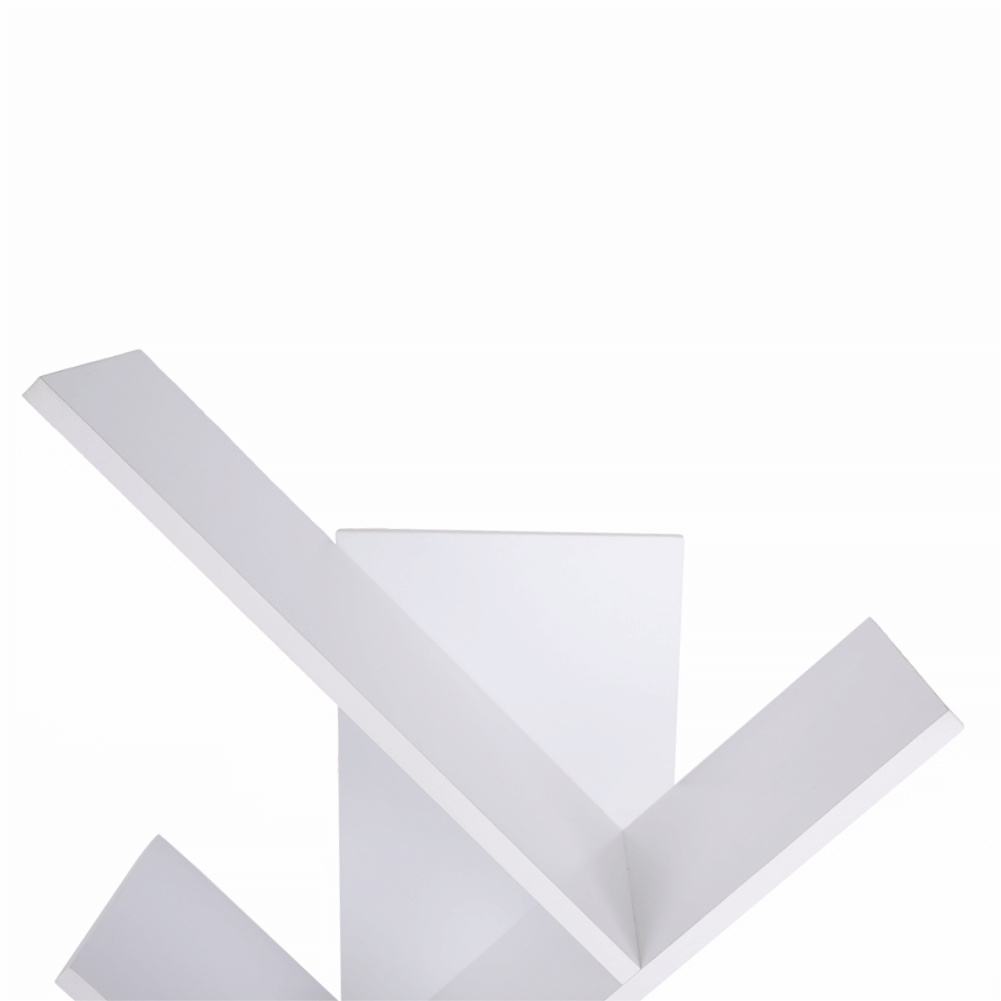 víceúčelový regál v moderním tvaru pyramidy s mnohostranným využitím. Vhodný do obývacího, dětského či studentského pokoje. Využijete ho ale hlavně v kanceláři, ve vaší pracovně, ale iv kuchyni. Je vyroben na Slovensku z kvalitní laminované dřevotřísky o síle lamina 16 mm. Je neutrální bílé barvy a rozměry jsou: ŠxVxH: 139x144x33 cm. Tlou