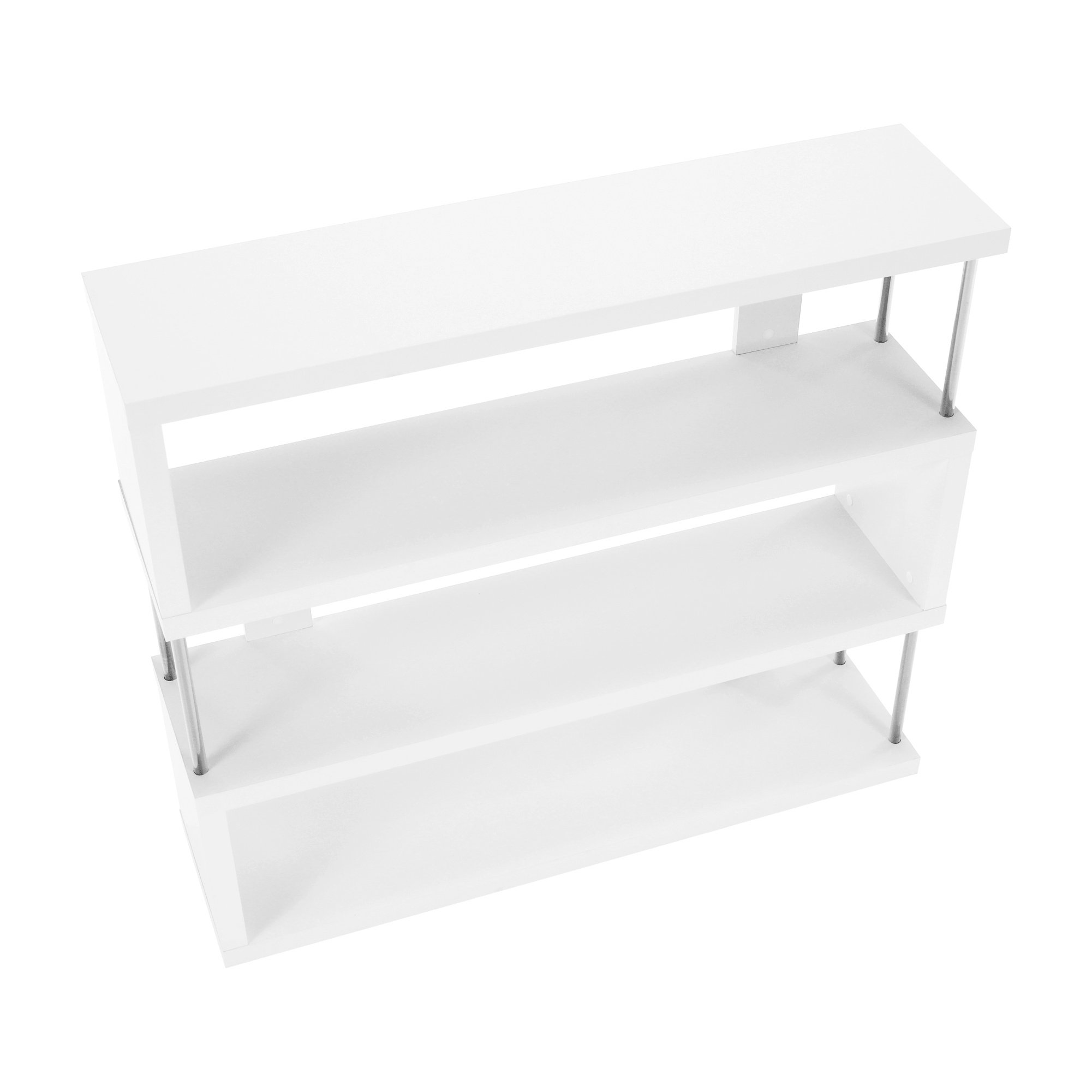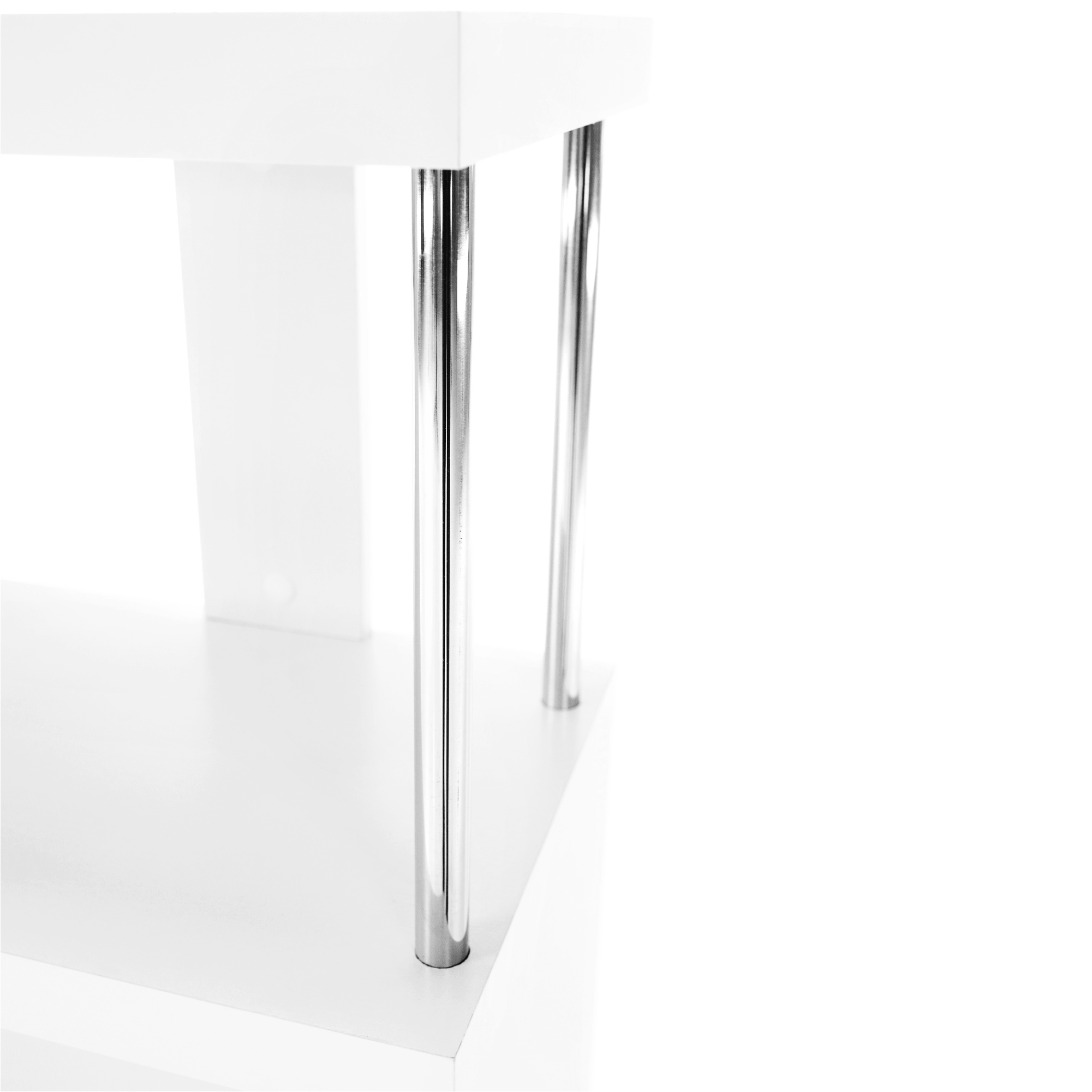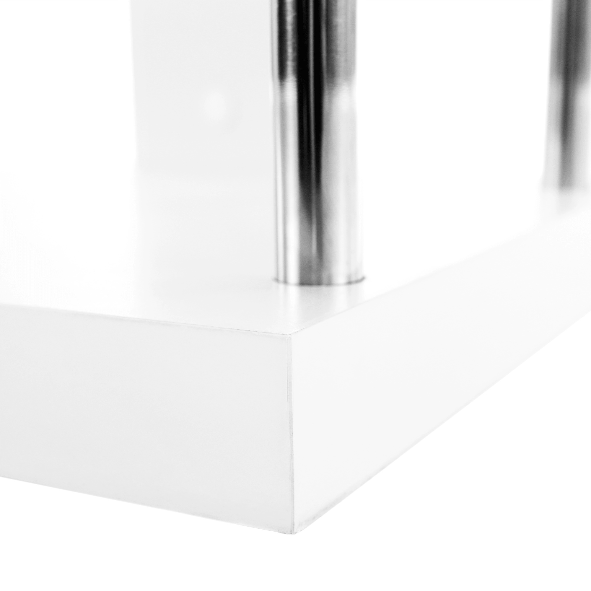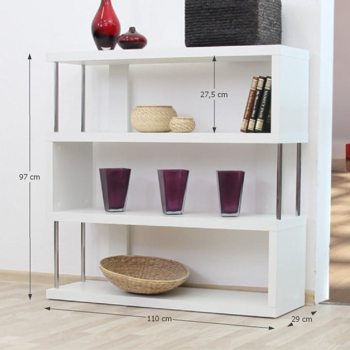 Víceúčelový regál BENITO Materiál: DTD laminovaná / chrom Barva: bílá/jemný lesk (ŠxHxV) 110x29x97 cm. Tloušťka korpusu: 36 mm Nosnost na polici: 10 kg Dodávané v demontu.