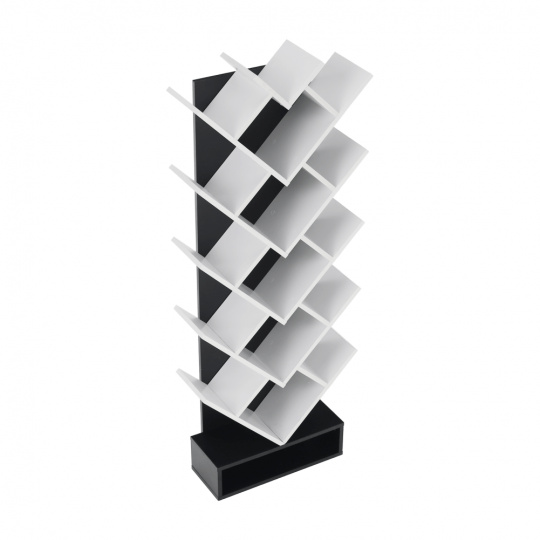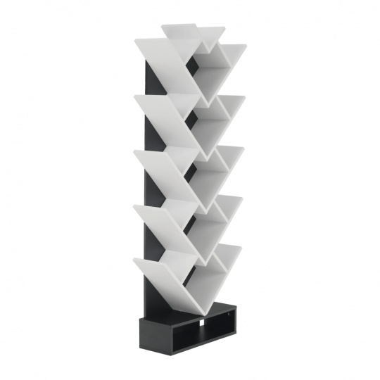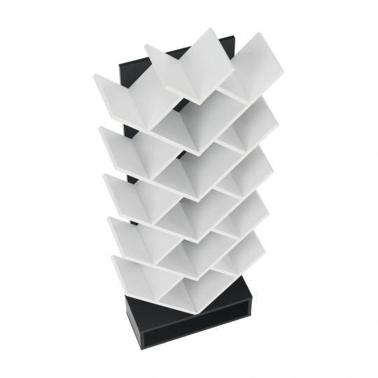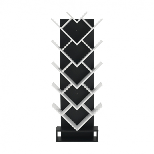 Víceúčelový regál VEVEY Materiál: DTD Barva: bílá / černá Rozměry (ŠxHxV): 59x21,6x150 cm. Tloušťka materiálu: 15 mm