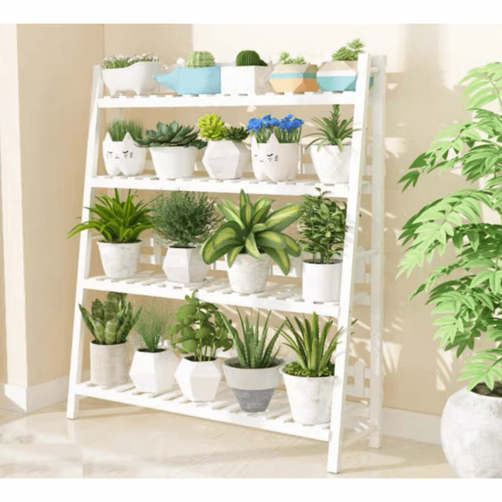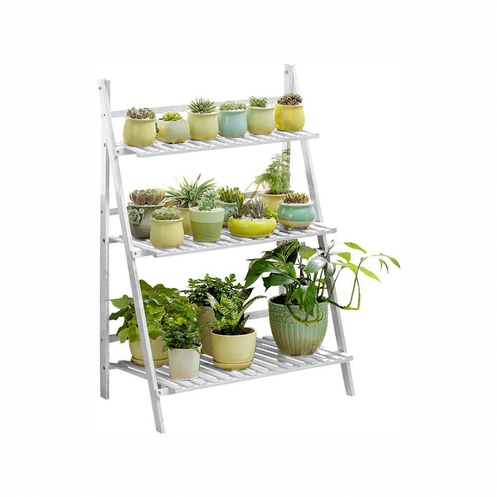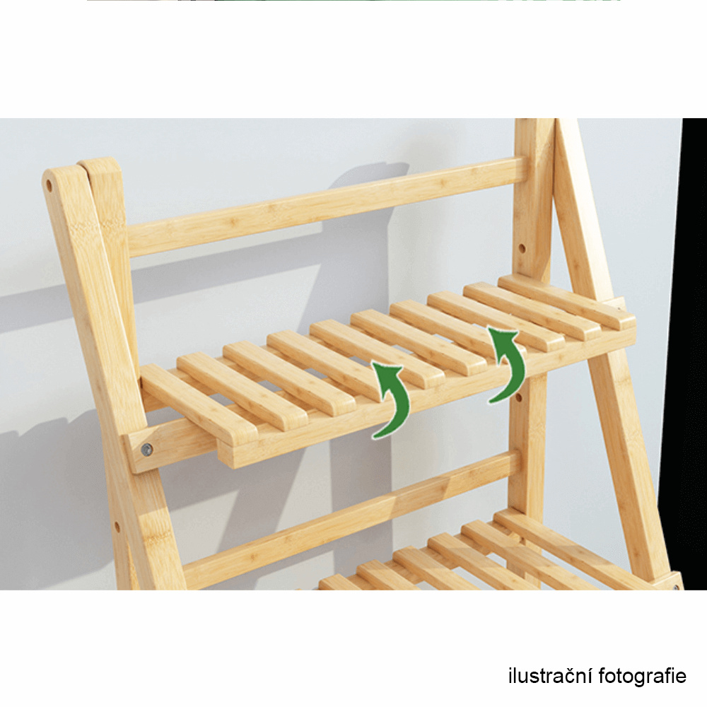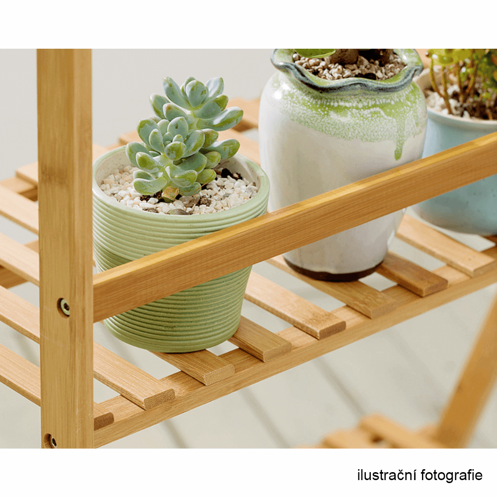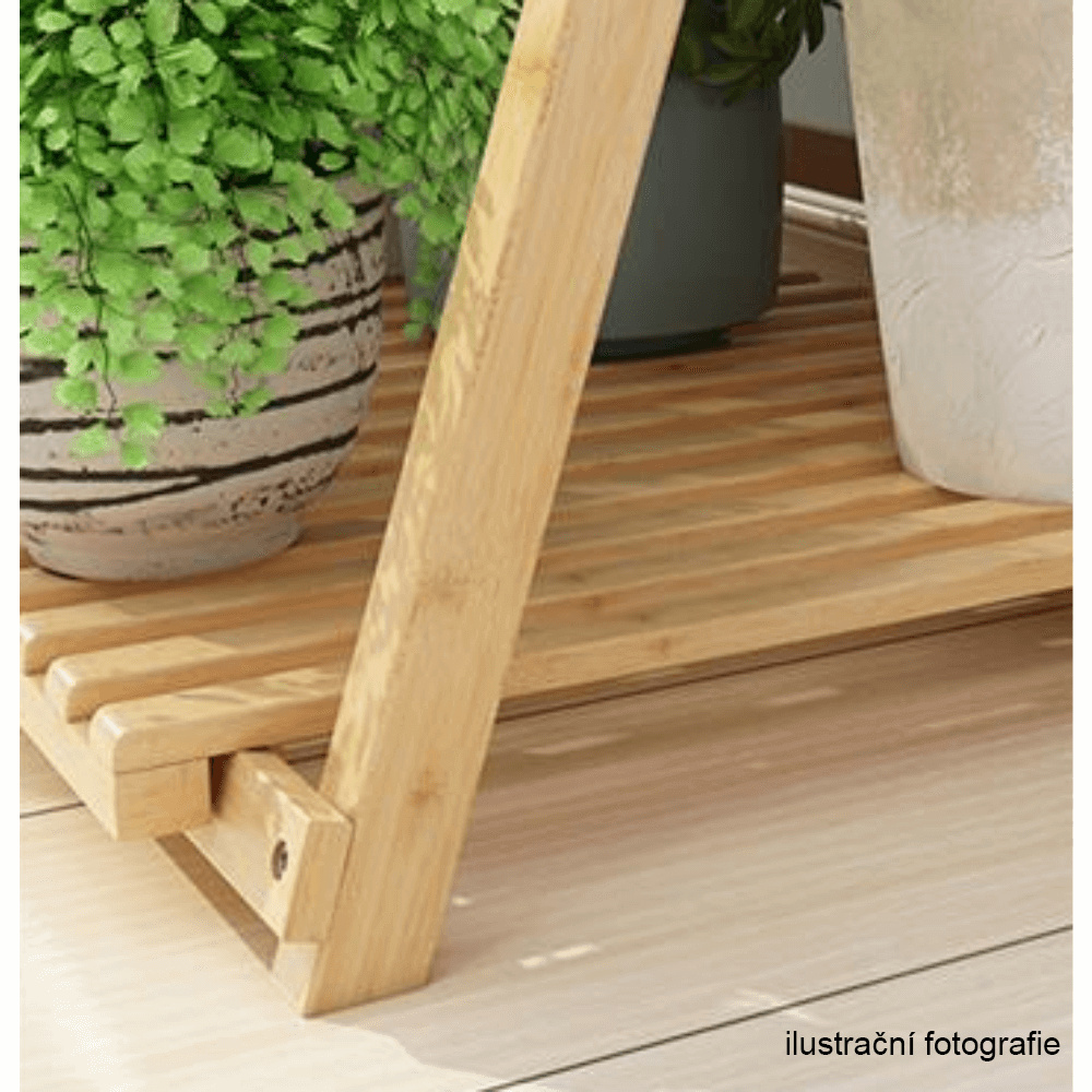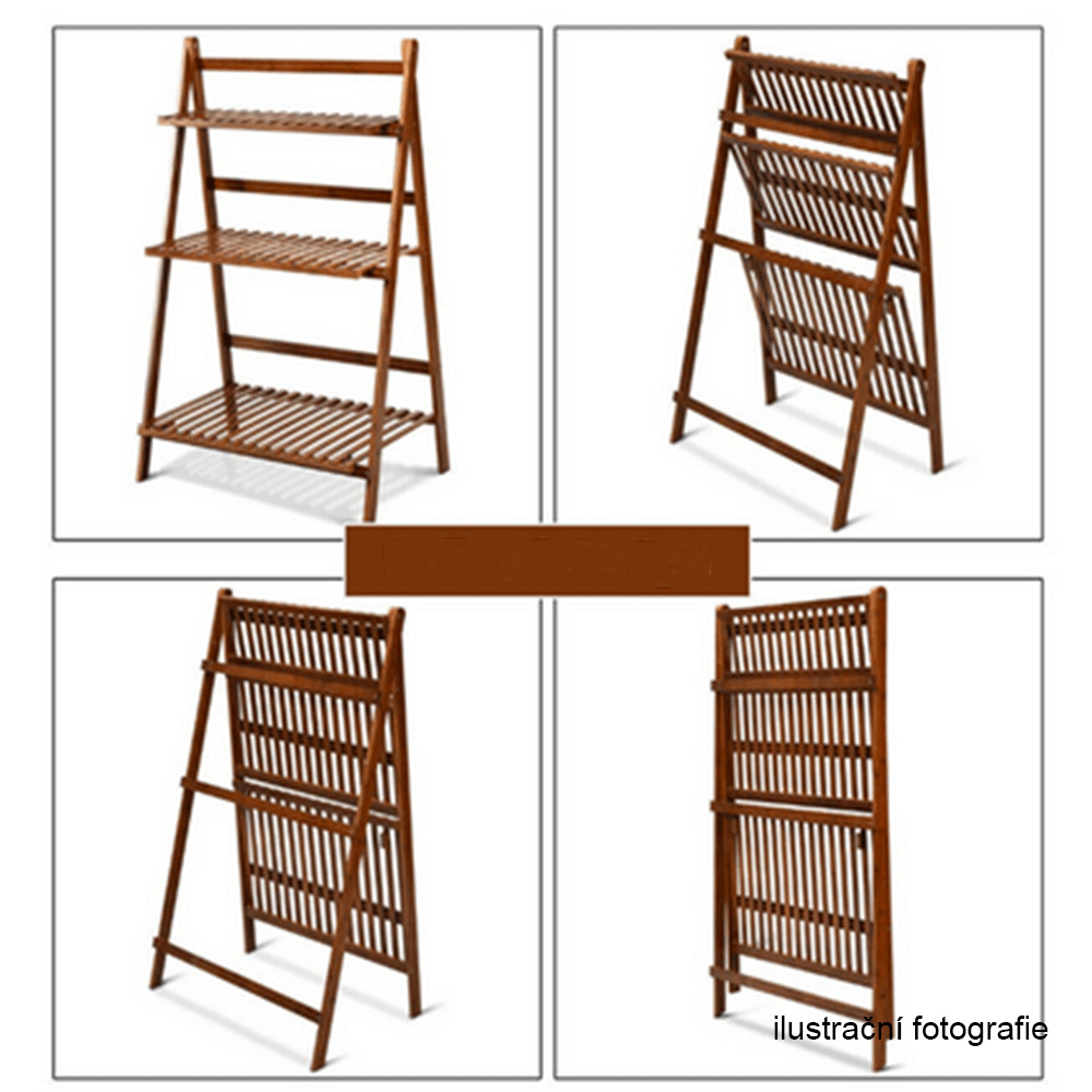 Materiál: bambus Barva: bílá Rozměry (ŠxHxV): 70x40x96 cm Nosnost na polici: 10 kg tři police Skládací Složený nezabere mnoho místa Jeden pár rukavic grátis Set ručního zahradního nářadí grátis Vhodný do interiéru i exteriéru Dodávané v demontu