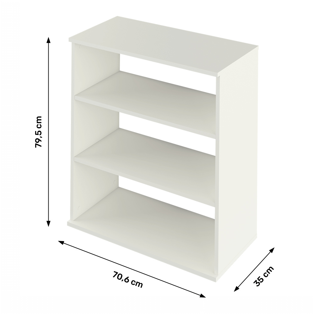 Materiál: DTD laminovaná Barva: bílá Rozměry (ŠxHxV): 70,6x35x79,5 cm Otevřený úložný prostor dvě police Tři odkládací prostory Dodávané v demontu