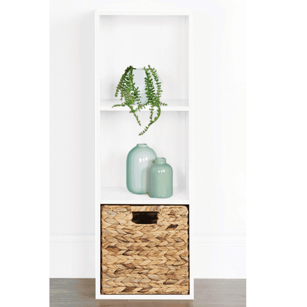 Materiál: DTD fóliovaná Farba: bíla Rozmery (ŠxHxV):30x28x89 cm Vnitřní rozměry police (ŠxHxV): 28x28x28 cm Tri police Otvorený úložný priestor Dodávané bez boxov Odporúčame pripevniť k stene Montážny materiál na pripevnenie k stene súčasťou balenia Dodávané v demonte