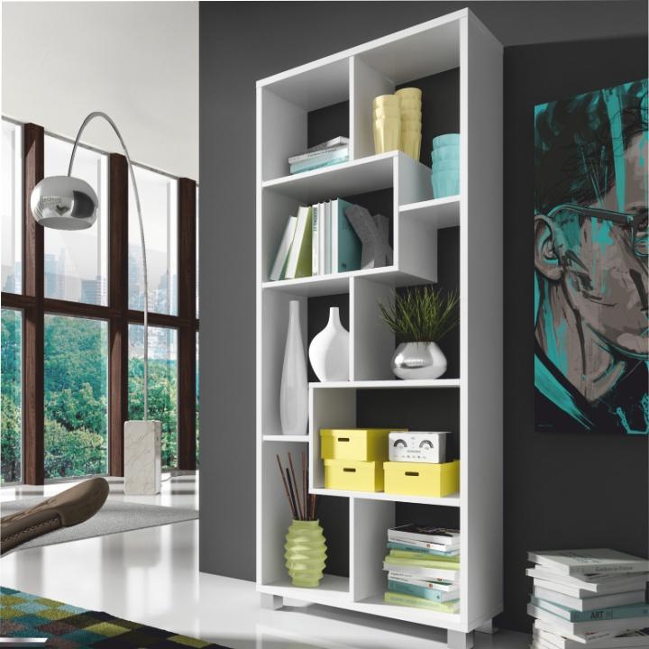 Regál kostka SARAH Materiál: DTD laminovaná Barva: bílá Rozměry (ŠxHxV): 139x33x144 cm Tloušťka materiálu: 16 mm Nosnost police: 5 kg Slovenský výrobek. Dodávané v demontu. Hmotnost: 52kg