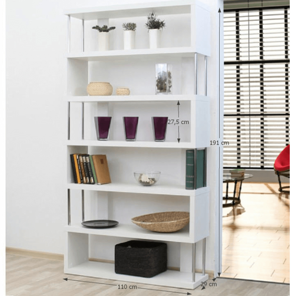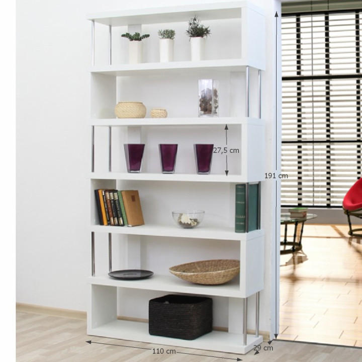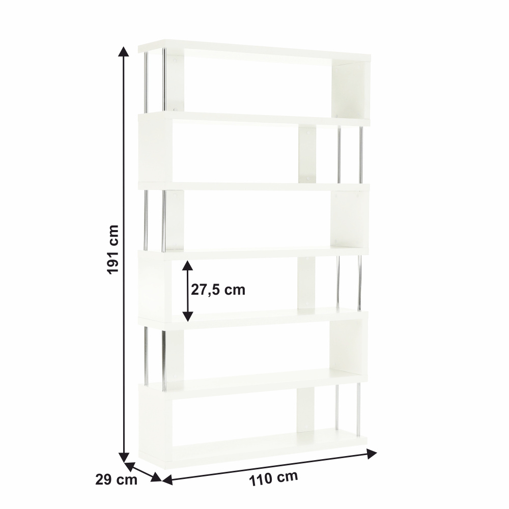 Víceúčelový regál ALIS Materiál: laminovaná DTD / chrom Barva: bílá Rozměry (ŠxHxV): 110x29x191 cm Tloušťka materiálu: 36 mm Nosnost na polici: 10 kg Hrany ošetřené páskou z přední i zadní strany Dodávané v demontu
