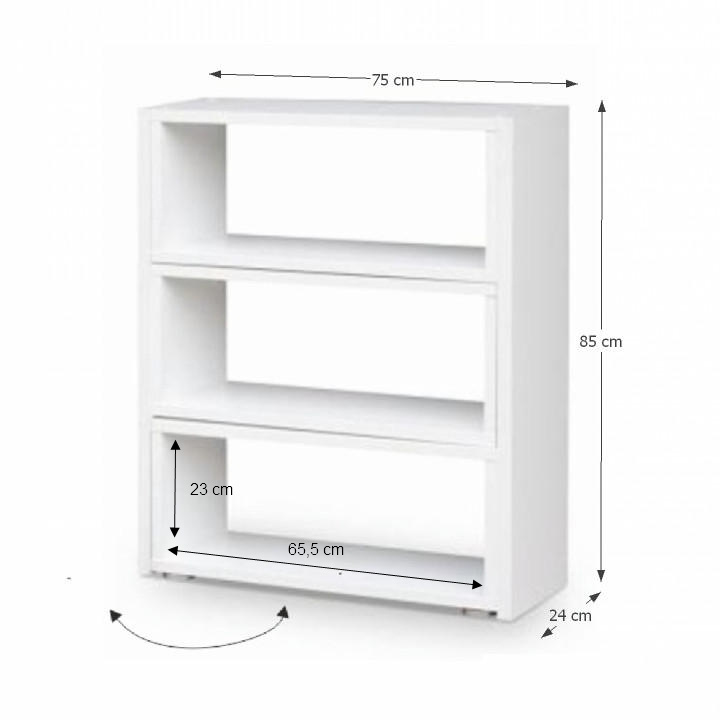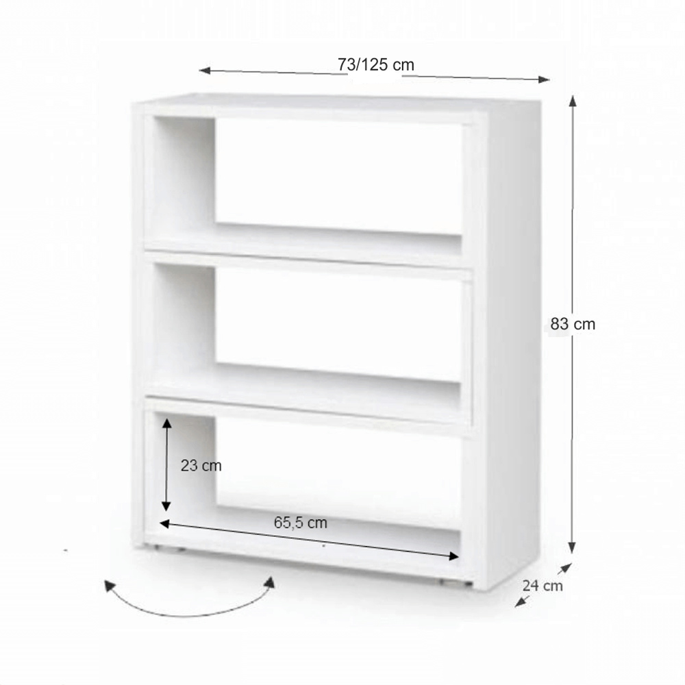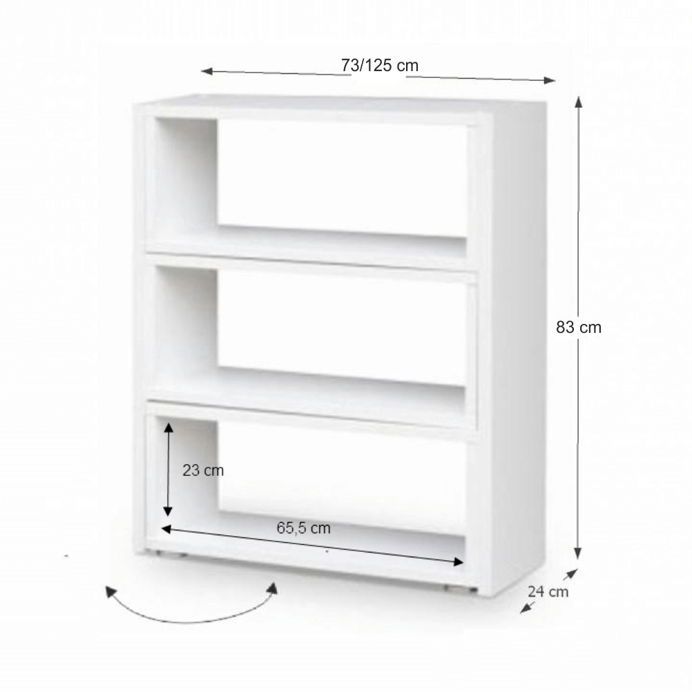 Moderní víceúčelový regálový systém KLOE III Materiál: DTD laminovaná Provedení: bílá Rozměry (ŠxHxV): 73-125x24x83 cm Dodávané v demontu.