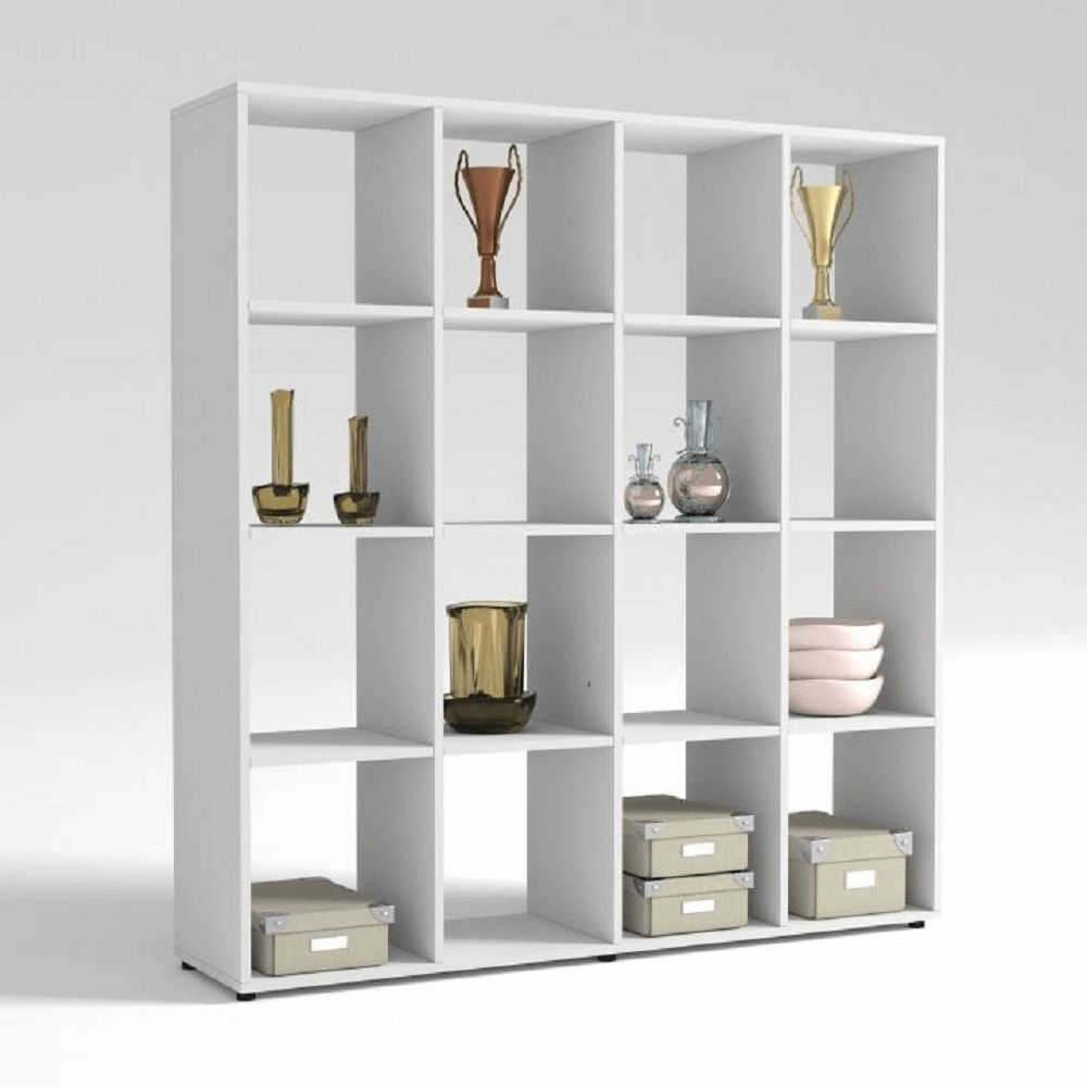 Víceúčelový regál v bílé barvě využitelný zejména jako knihovna. Materiál: DTD laminovaná Barva: bílá Rozměry (ŠxHxV): 43x20x143,5 cm Tloušťka materiálu: 12 mm Nosnost regálu: 24 kg. Hmotnost: 8.9kg