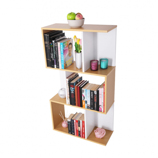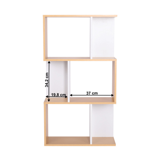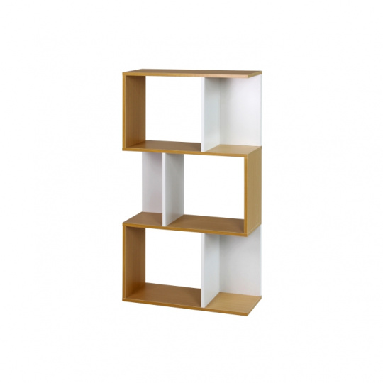 Moderní víceúčelový regál. Provedení: DTD Barva: borovice / bílá. Rozměry (ŠxHxV): 60x24x108 cm Dodávané v demontu. Hrúbka materiálu: 15 mm