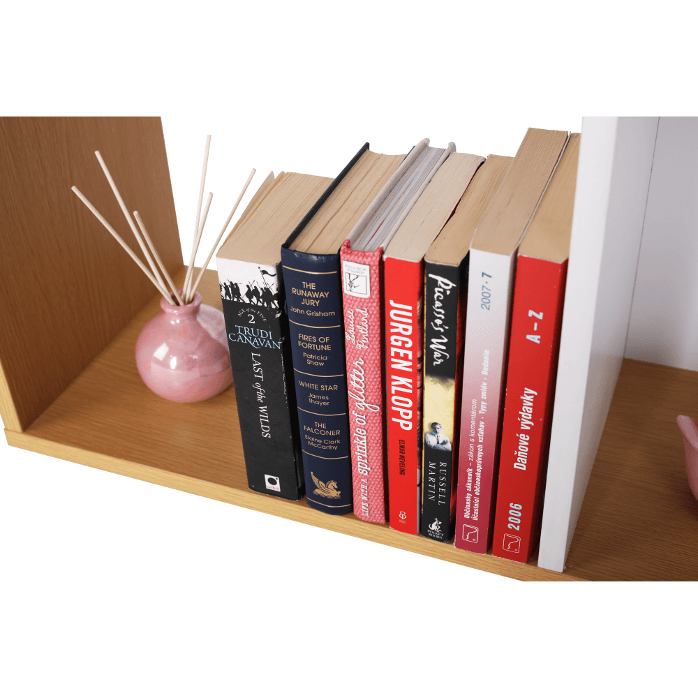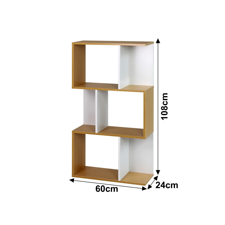 Moderní víceúčelový regál. Provedení: DTD Barva: borovice / bílá. Rozměry (ŠxHxV): 60x24x108 cm Dodávané v demontu. Hrúbka materiálu: 15 mm