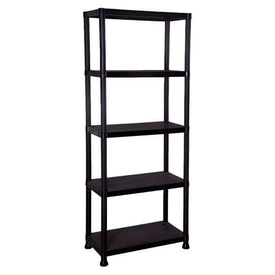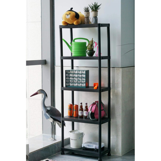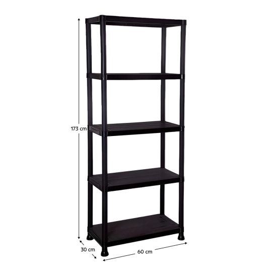 Materiál: plast Barva: černá Rozměry (ŠxHxV): 60x30x173 cm Nosnost na polici: 20 kg Nosnost: Max. 100 kg Policový Víceúčelový Praktický 5 odkládacích ploch Otevřený úložný prostor Doporučujeme rovnoměrné zatížení polic Jednoduchá, rychlá montáž Jednoduchá údržba Vhodný do dílny, sklepa, kuchyně, garáže, pracovny Moderní Doporučujeme připevnit ke zdi Dodáváno v demontu