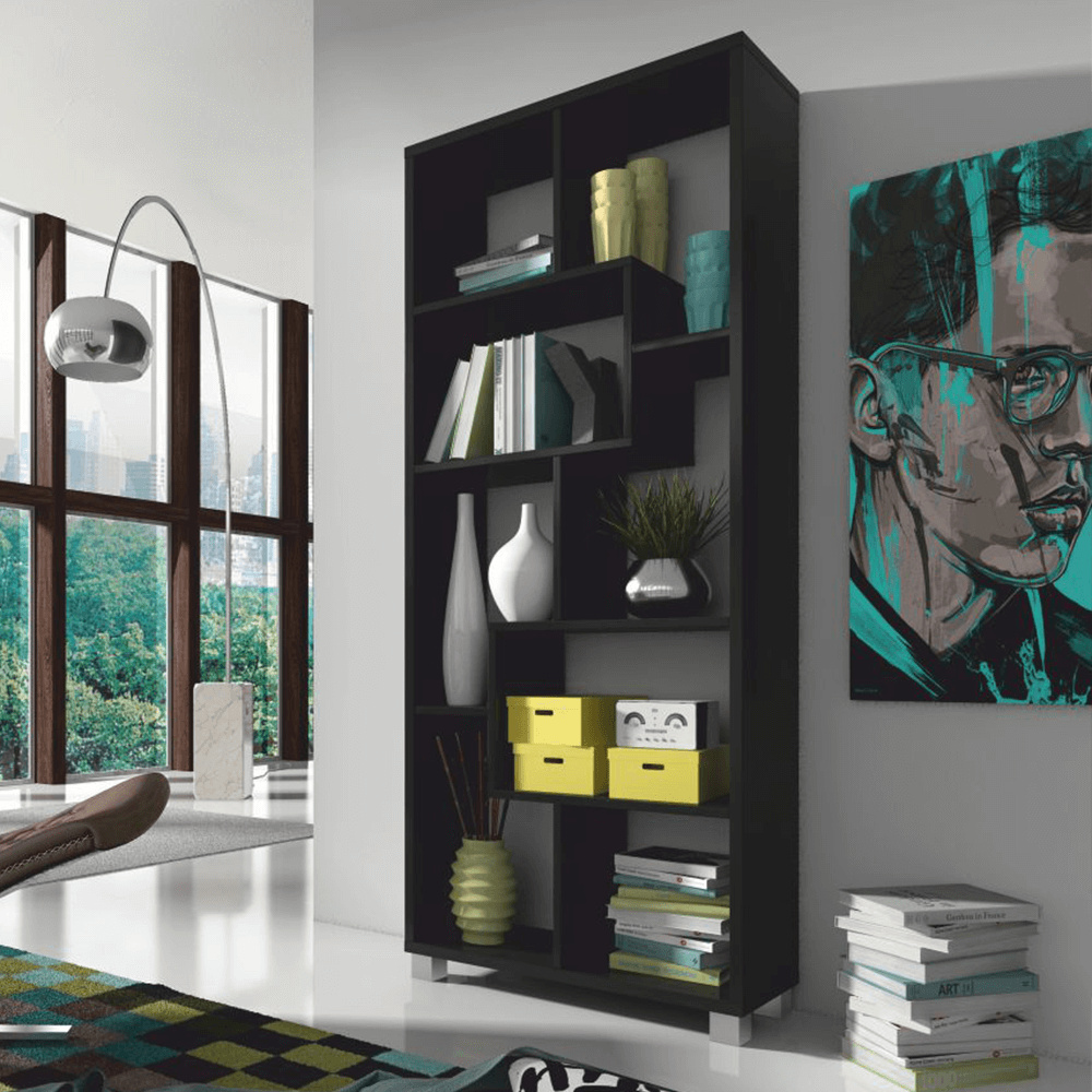 Víceúčelový regál ADEN v černém barevném provedení. Materiál laminovaná DTD. Rozměry vertikální (ŠxHxV): 68,5x25x161,3 cm Rozměry horizontální (ŠxHxV): 156,3x25x73,4 cm Tloušťka materiálu polic: 16 mm Tloušťka materiálu korpus: 22 mm Dodávané v demontu