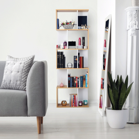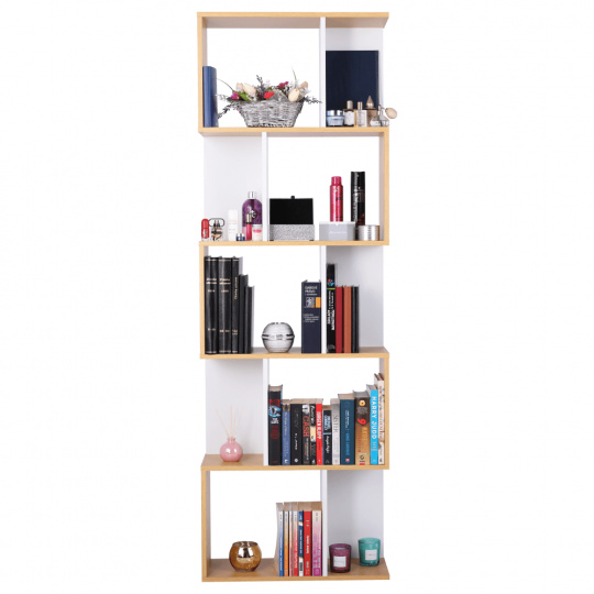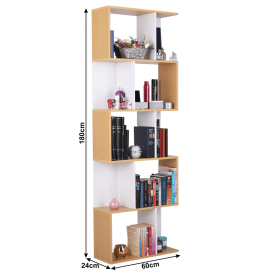 Moderní víceúčelový regál. Provedení: DTD Barva: borovice / bílá. Rozměry (ŠxHxV): 60x24x108 cm Dodávané v demontu. Hrúbka materiálu: 15 mm Hmotnost: 14.5kg