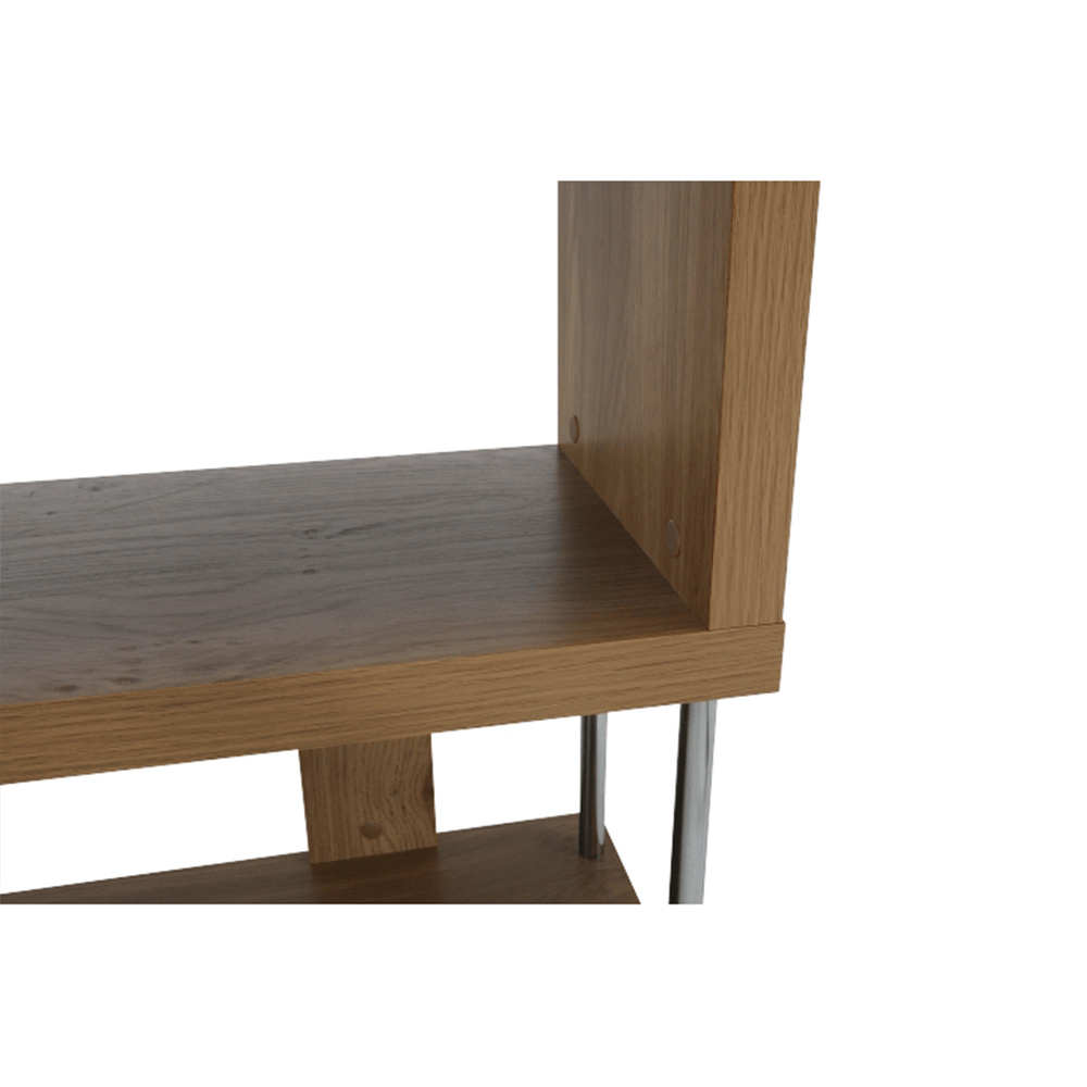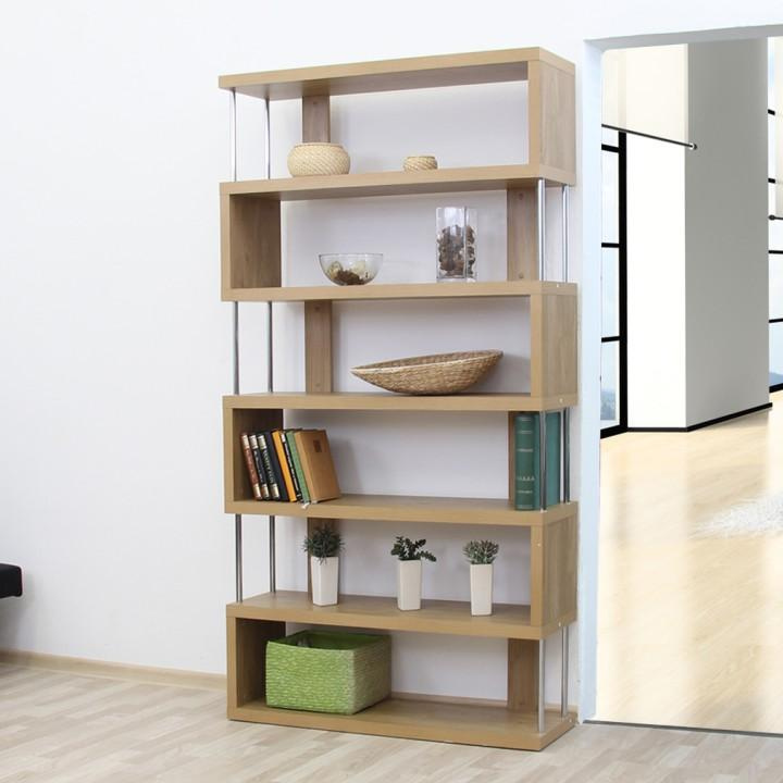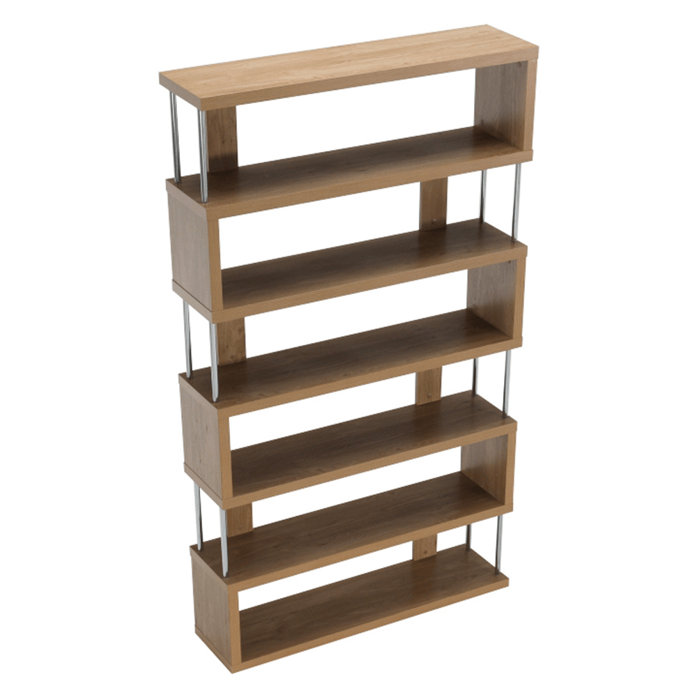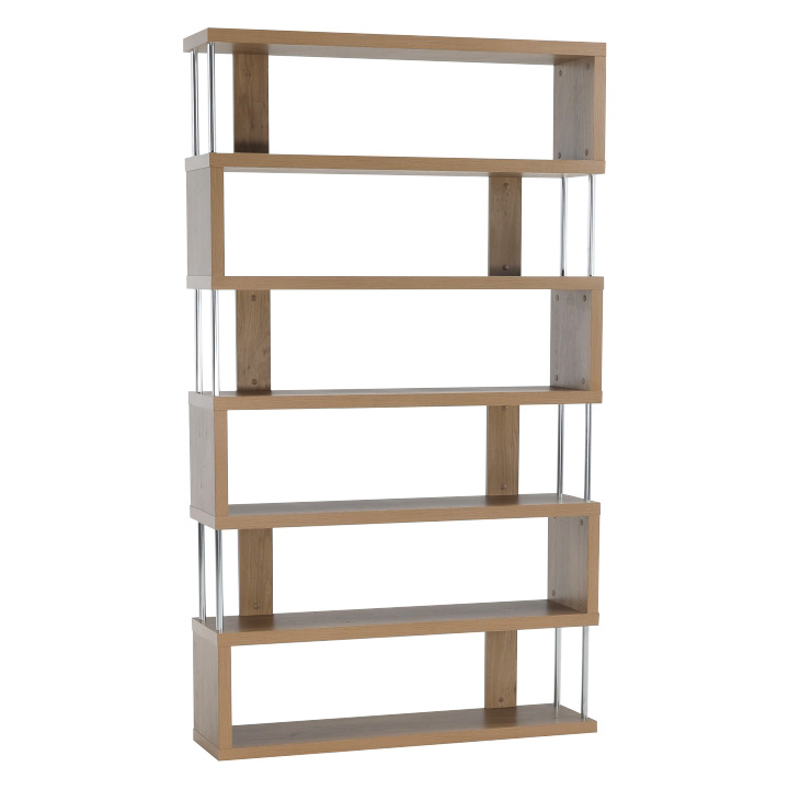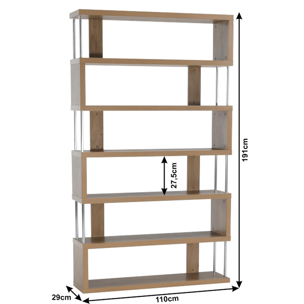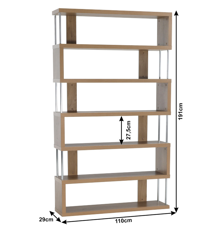 Víceúčelový regál ALIS Materiál: laminovaná DTD / chrom Barva: dub Rozměry (ŠxHxV): 110x29x191 cm Tloušťka materiálu: 36 mm Nosnost na polici: 10 kg Hrany ošetřené páskou z přední i zadní strany Dodávané v demontu