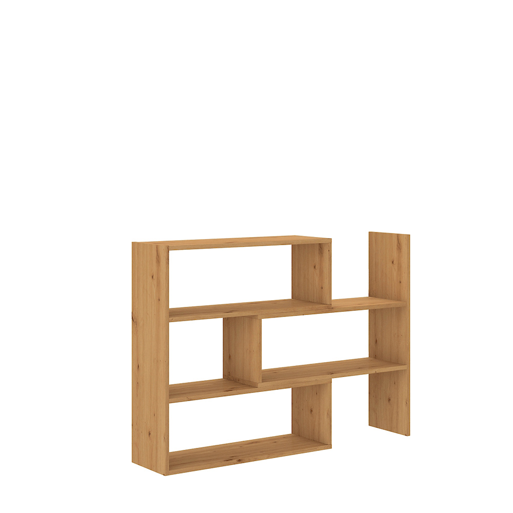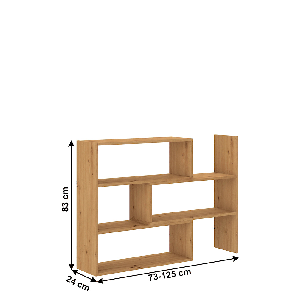 Moderní víceúčelový regálový systém KLOE III Materiál: DTD laminovaná Provedení: dub artisan Rozměry (ŠxHxV): 73-125x24x83 cm Dodávané v demontu.